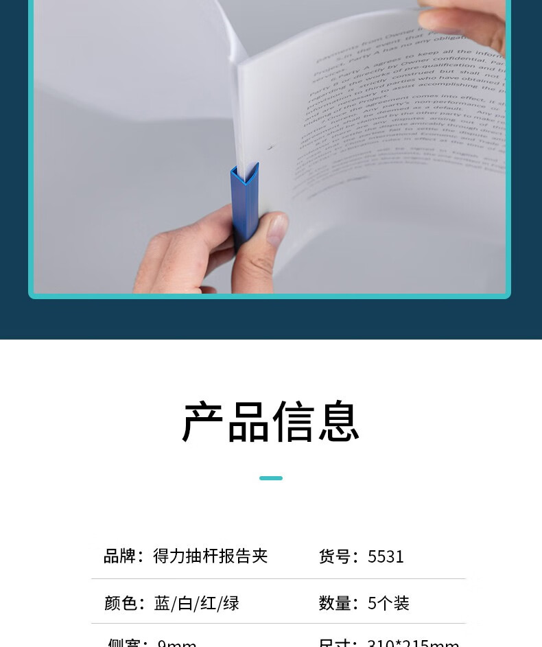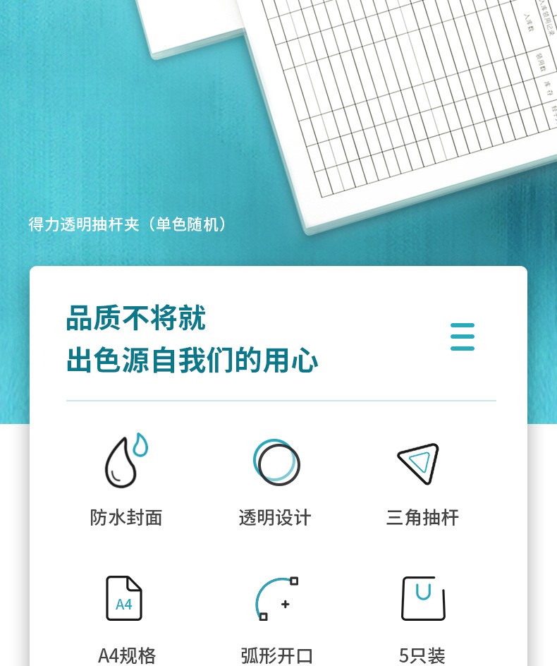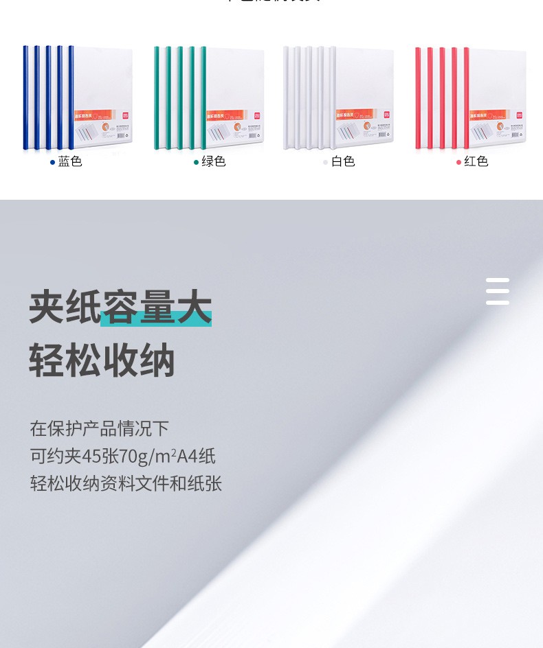 得力(deli) A4透明抽杆夹拉杆夹文件夹资料夹 办公用品 可夹40张 5531(10个装全部白色)** 自营