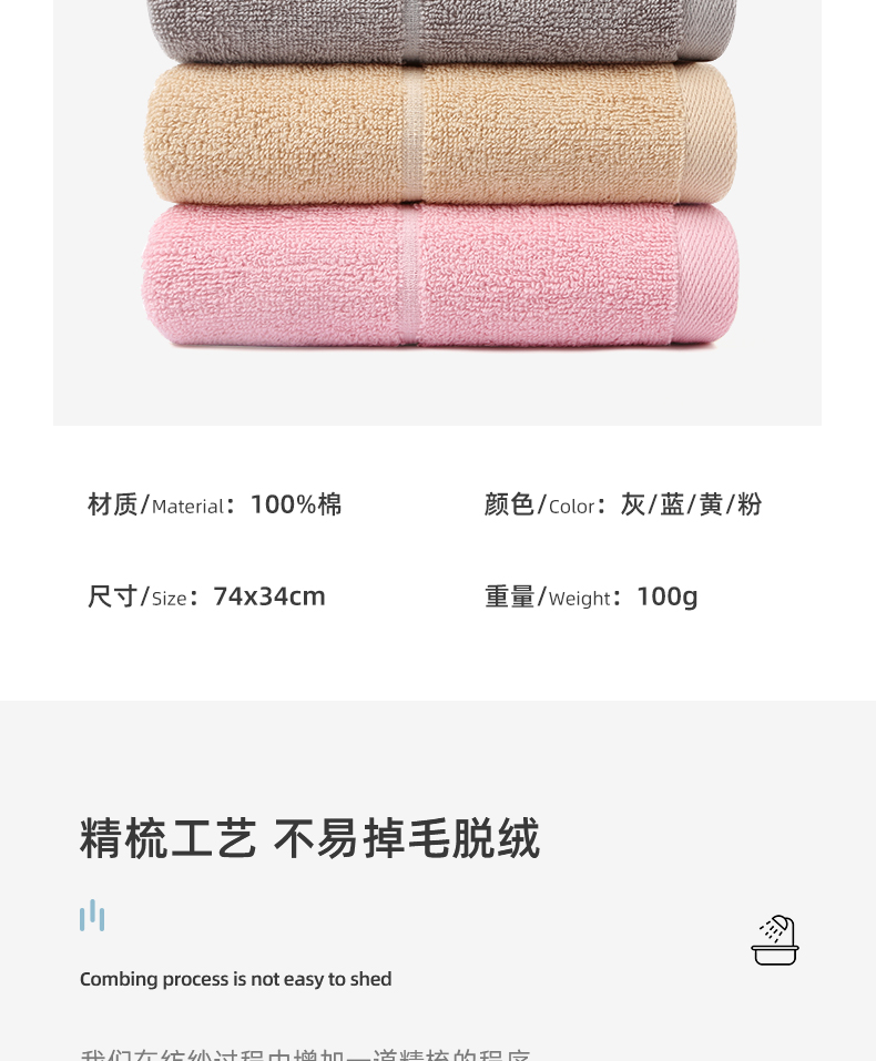 洁丽雅 毛巾单条装新疆纯棉柔软不易掉毛洗脸洗澡加厚大面巾68*34cm100G** 自营