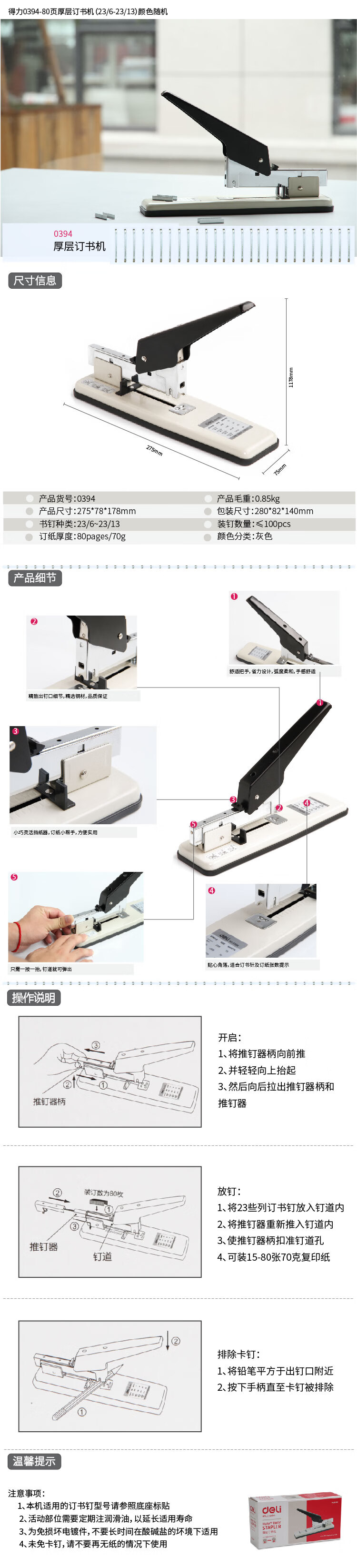 得力(deli)0394订书机 大号重型钉书机 加厚 可订厚层多张订书器 办公财务装订机 1台/组** 自营