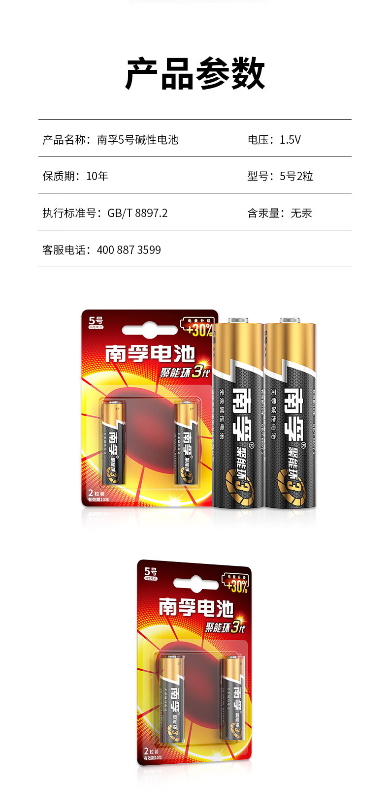 南孚(NANFU)5号电池2粒 五号碱性 聚能环3代 2粒** 自营