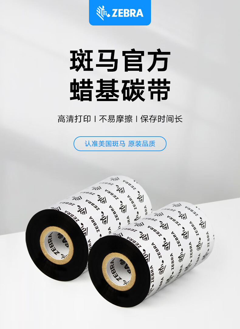 ZEBRA 斑马蜡基碳带条码标签打印机专用色带 70*300M(工业机专用)每卷** 自营
