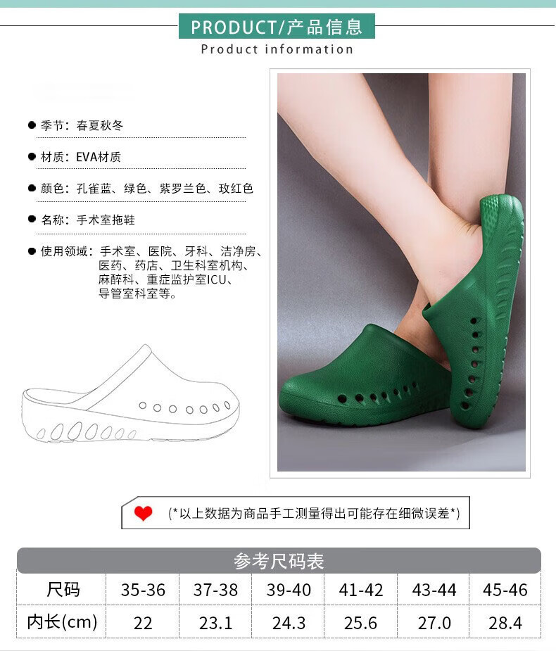 沪欧菲亚 手术室拖鞋洞洞手术鞋 孔雀蓝无带** 自营
