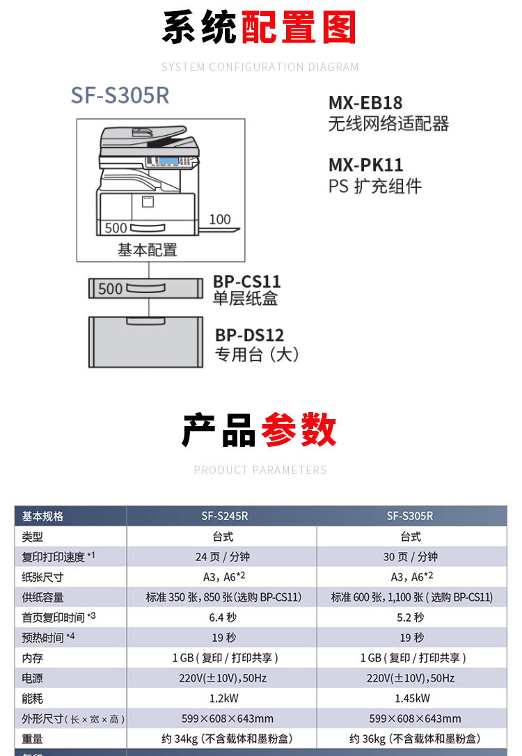 夏普(SHARP)SF-S305R 黑白激光复合机** 自营