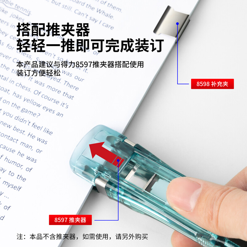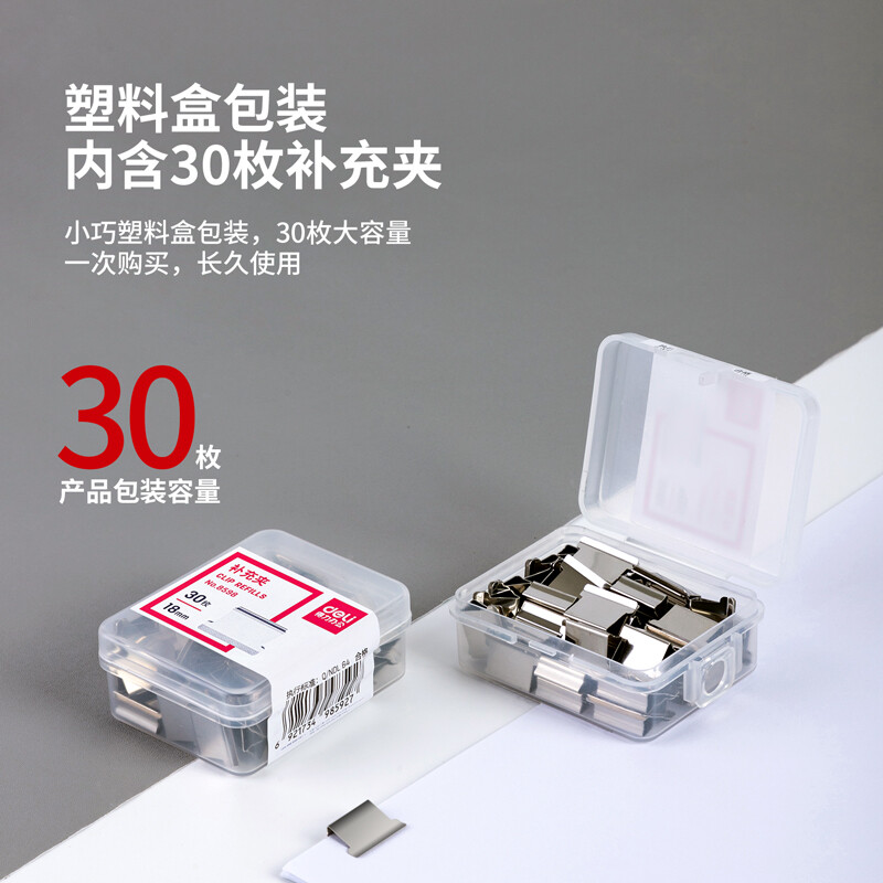 得力(deli)30枚推夹器夹纸器补充夹子8598 (适用于8597)** 自营