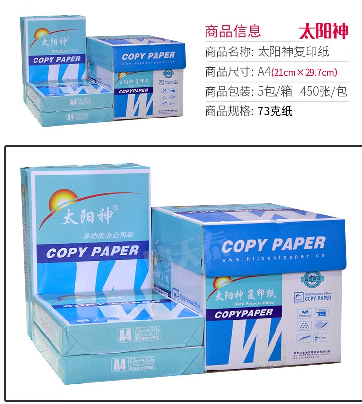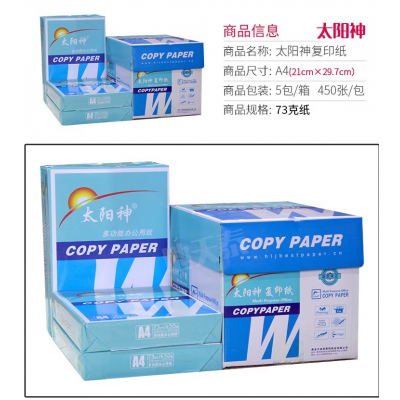 A4太阳神复印纸双白纸办公用品B4 5草稿纸73克整箱 A4~73g(一箱8包洋凝珑 A4~73g(一箱8包 每包/450张)新** 自营