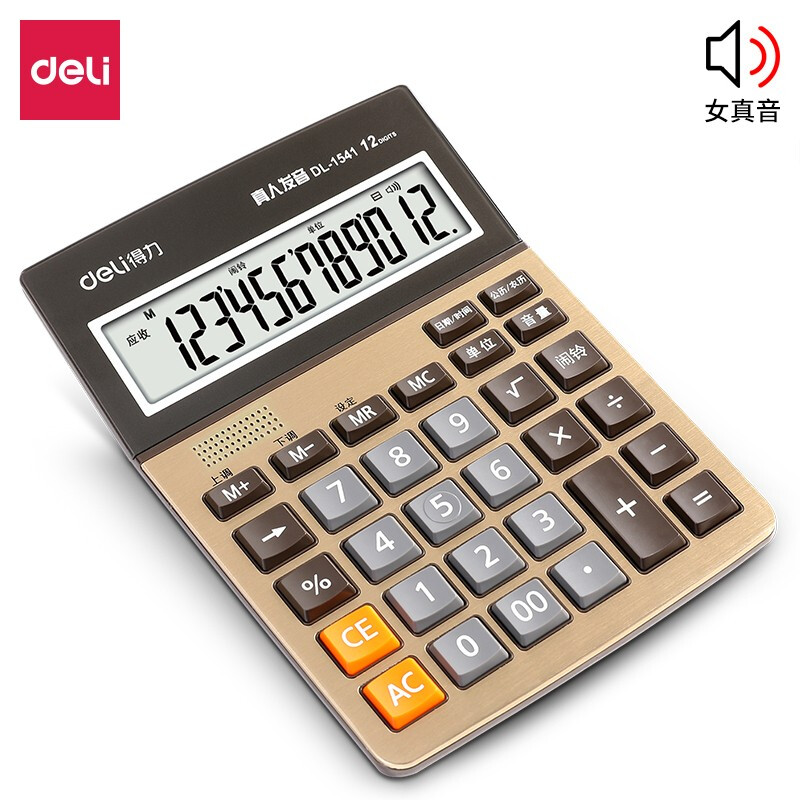 得力(deli)12位大屏幕语音计算器 闹钟日历功能语音计算机 学生/办公口算 办公用品 金色1541A** 自营