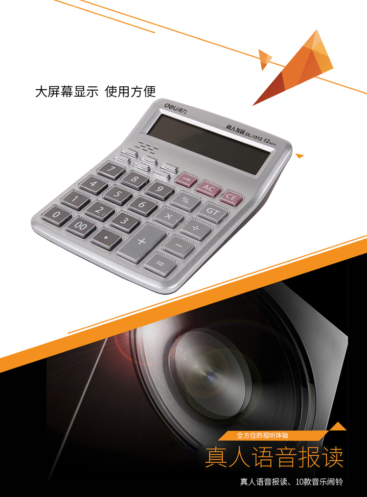 得力(deli)1511计算器 12位大屏幕语音型计算器/计算机 水晶按键经济款** 自营