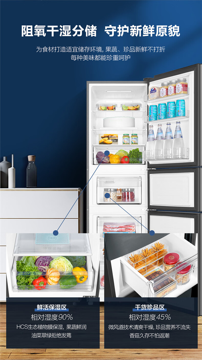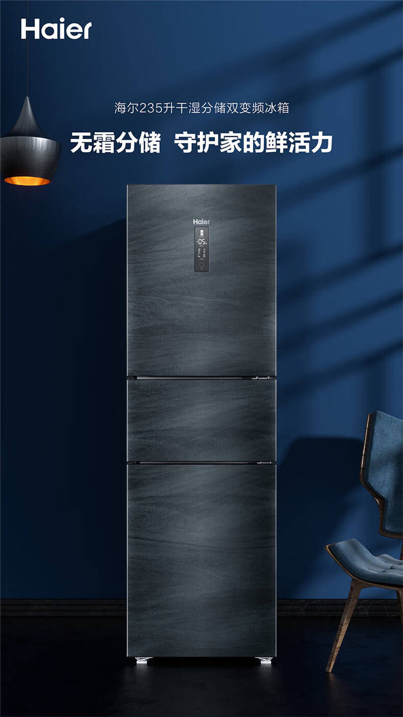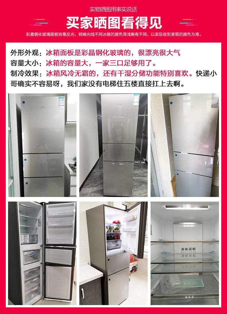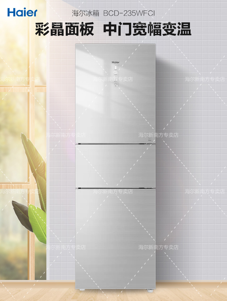 海尔(Haier)海尔冰箱超薄三门家用风冷无霜小型省电节能电冰箱小冰箱一级能效阻氧干湿分储 235升彩晶玻璃面板BCD-235WFCI** 自营