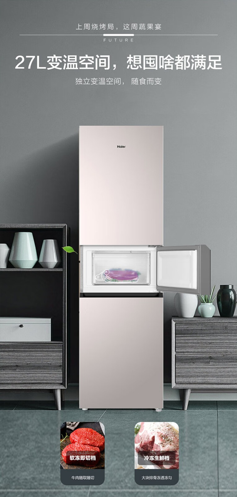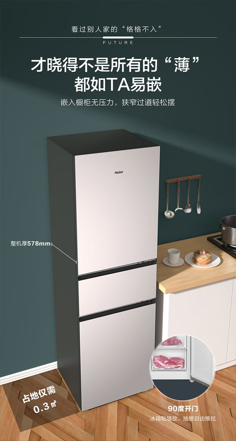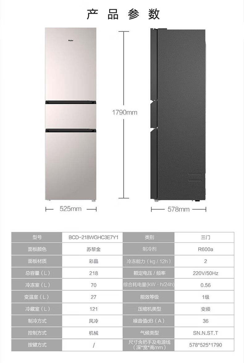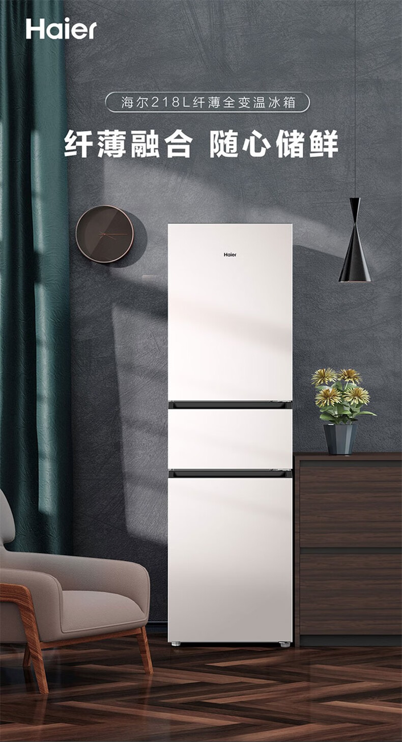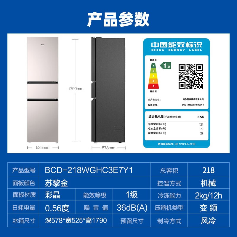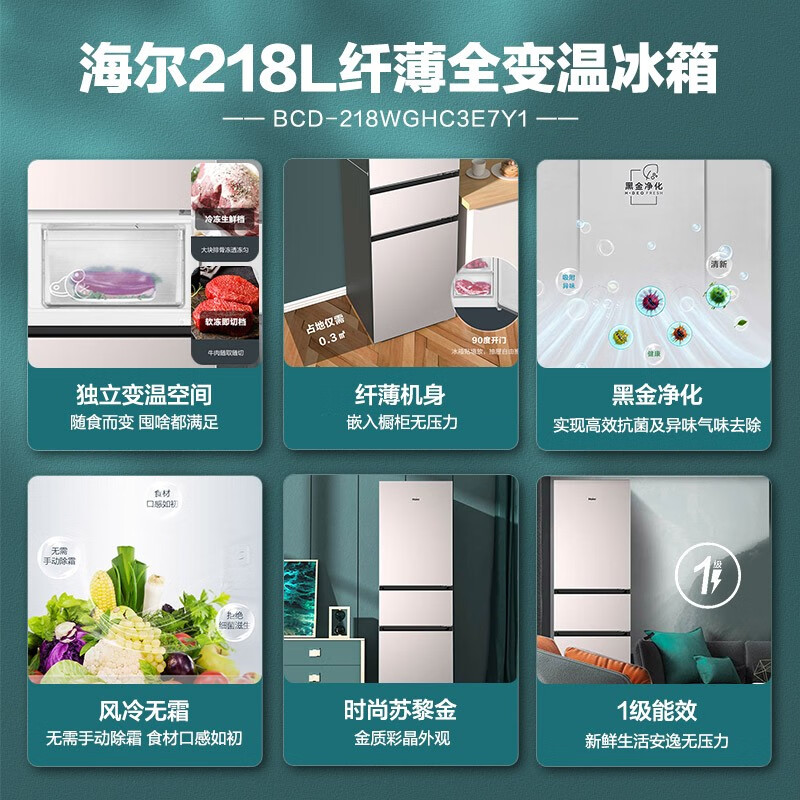 海尔(Haier)/直冷家用租房公寓超薄电冰箱 【新上市】一级能效BCD-218WGHC3E7Y1** 自营