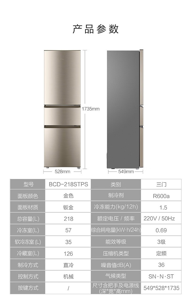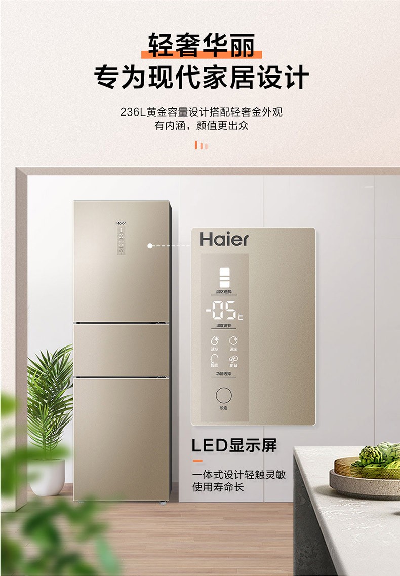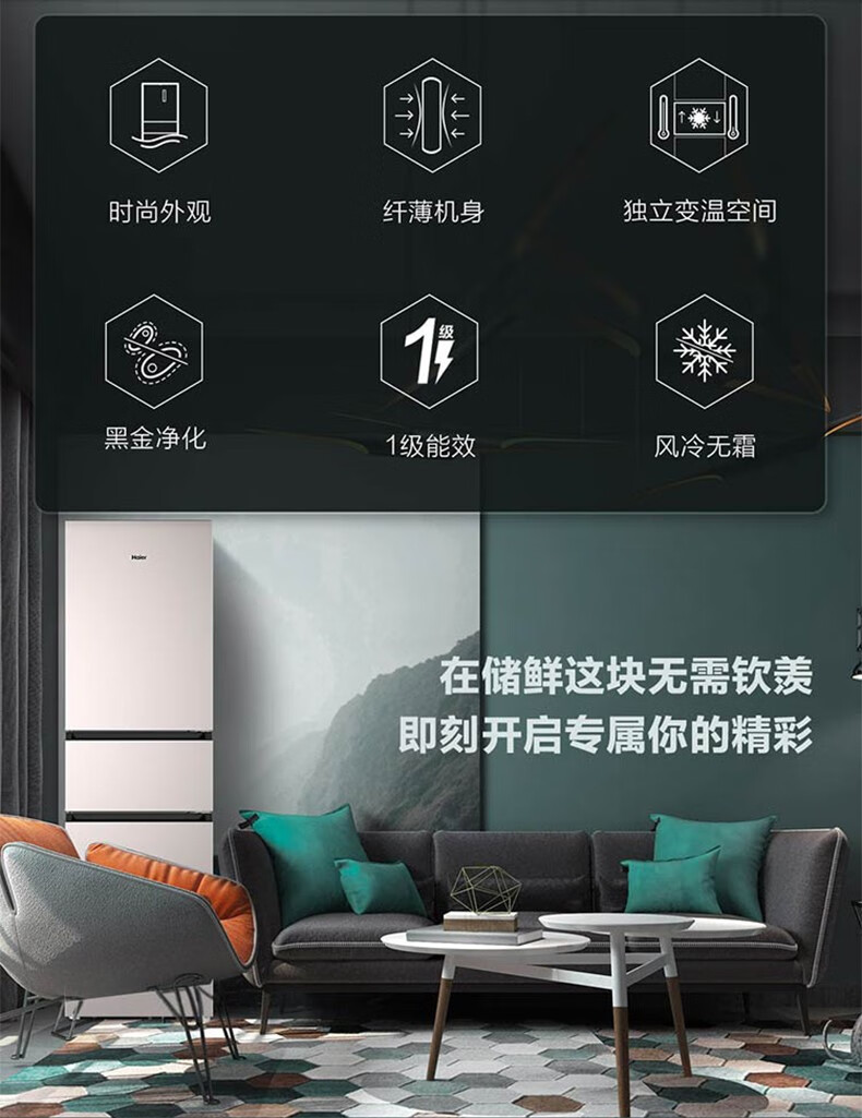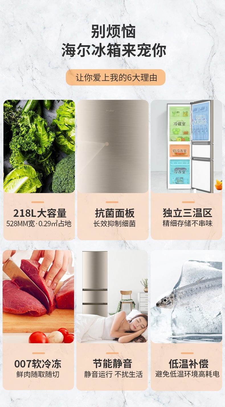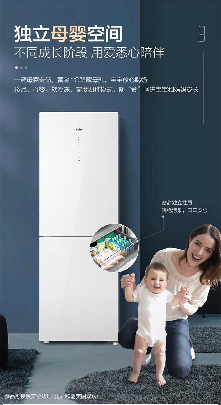 海尔(Haier)/直冷家用租房公寓超薄电冰箱 【新上市】一级能效BCD-218WGHC3E7Y1** 自营