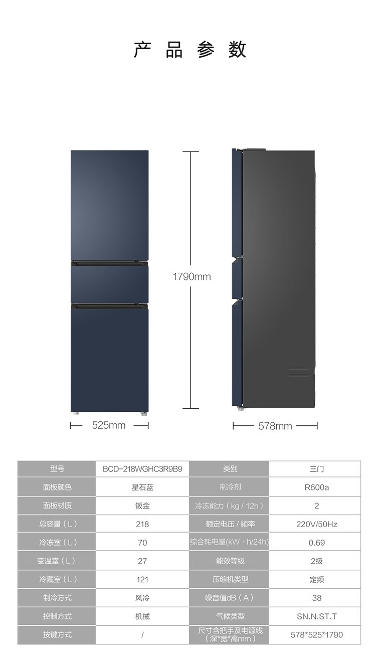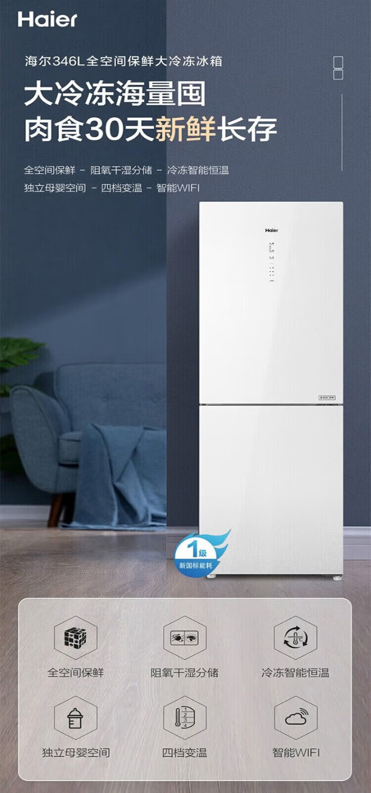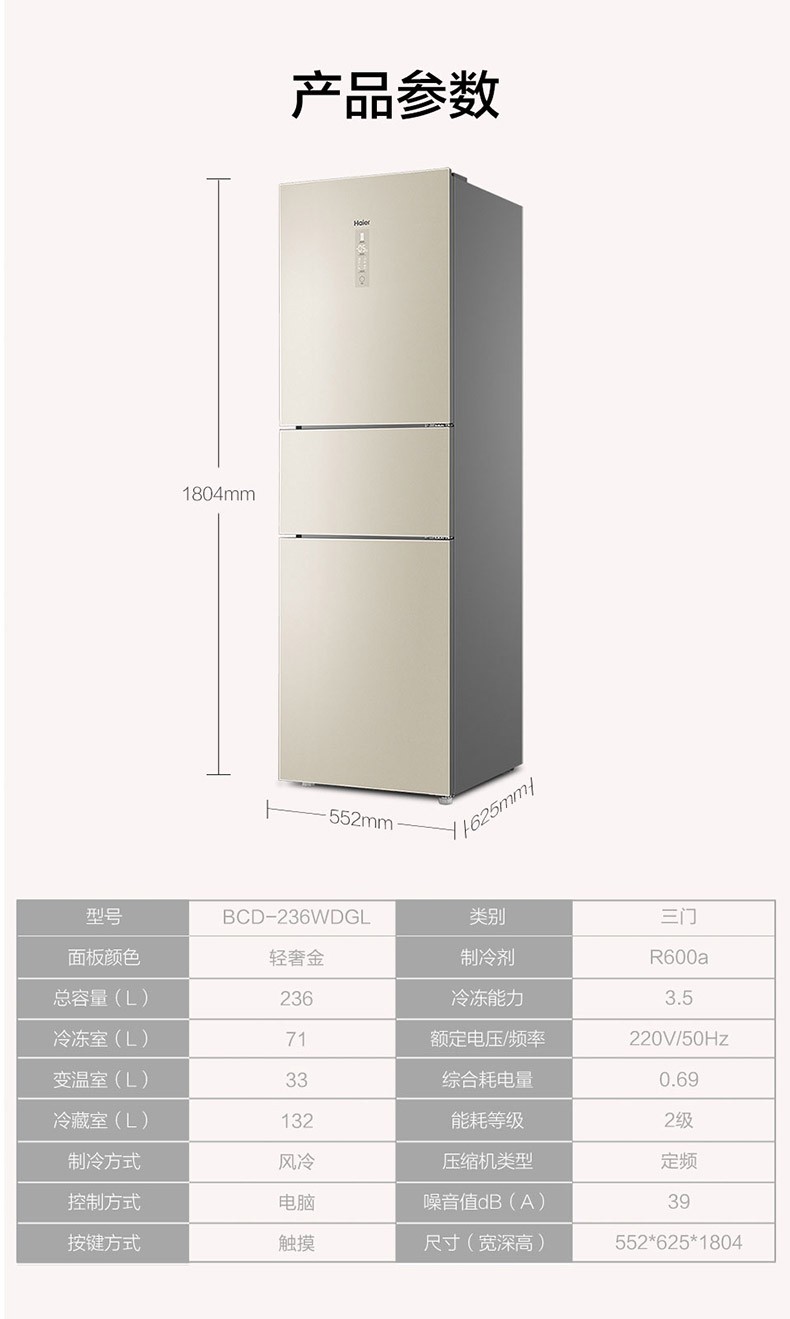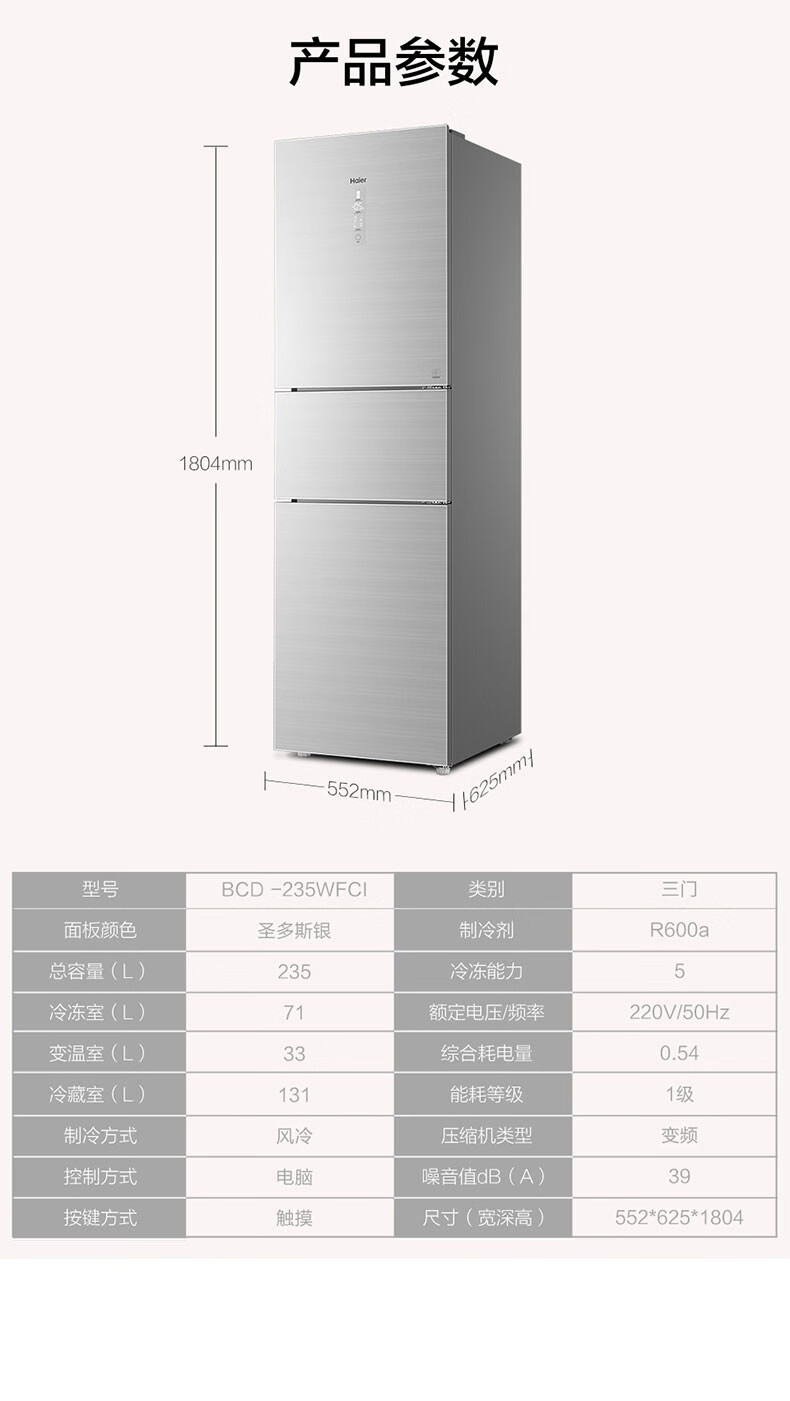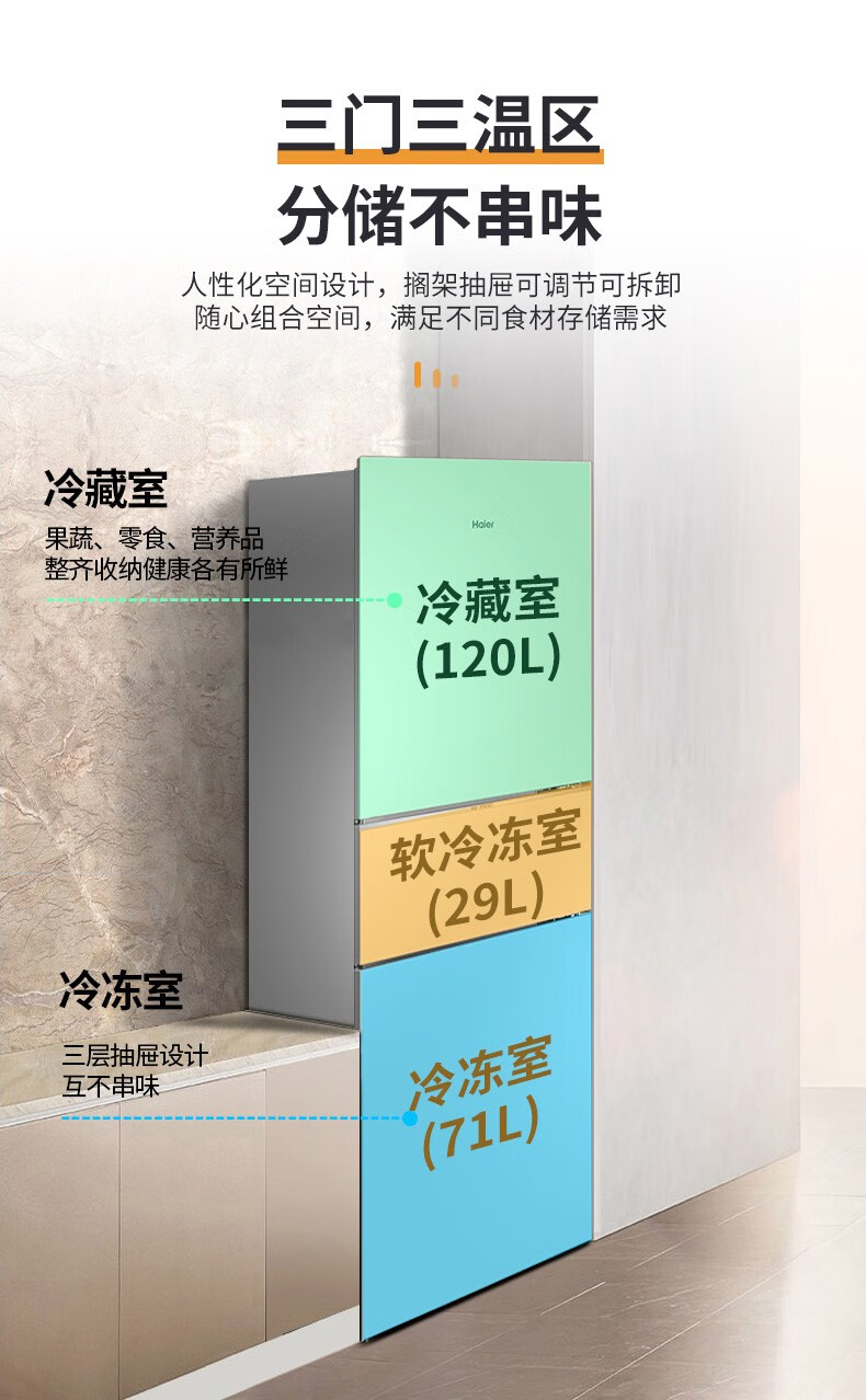 海尔(Haier)/直冷家用租房公寓超薄电冰箱 【新上市】一级能效BCD-218WGHC3E7Y1** 自营