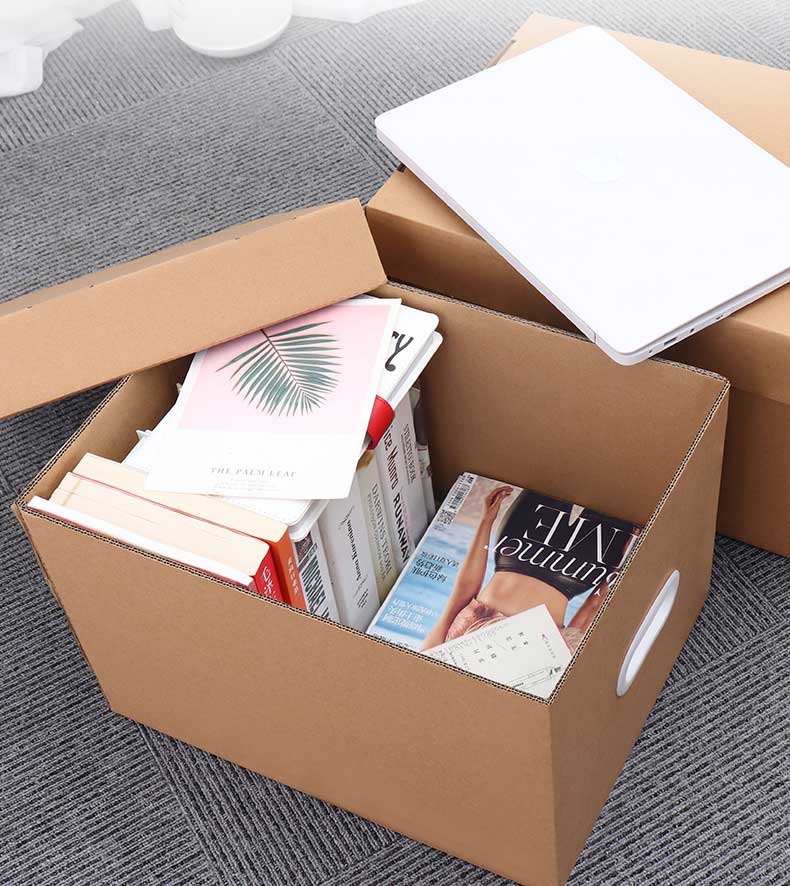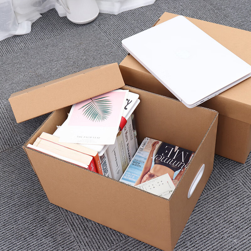 贝瑟斯搬家纸箱有扣手打包寄快递箱子书籍文件纸板收纳盒40*30*26cm ** 自营