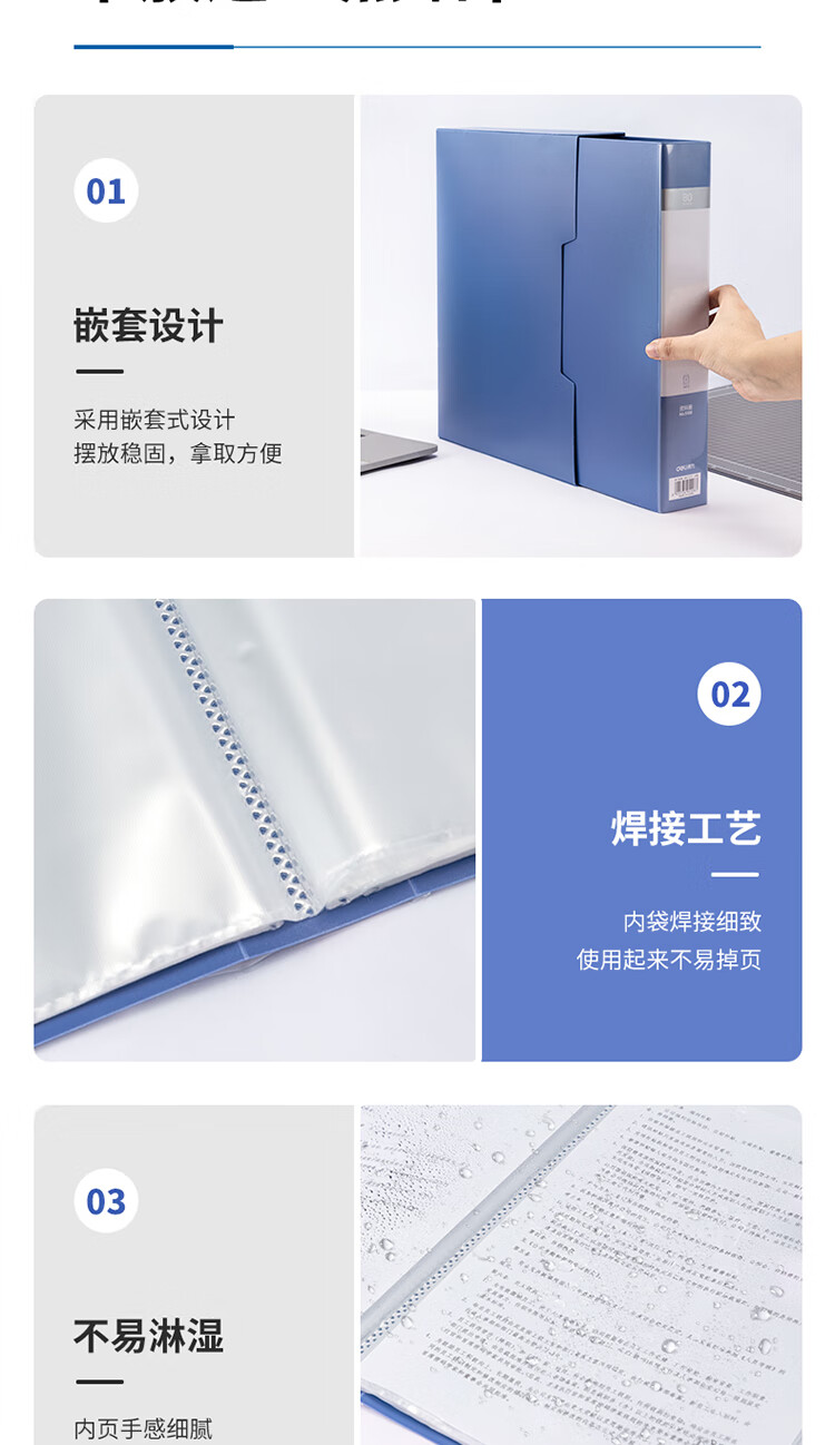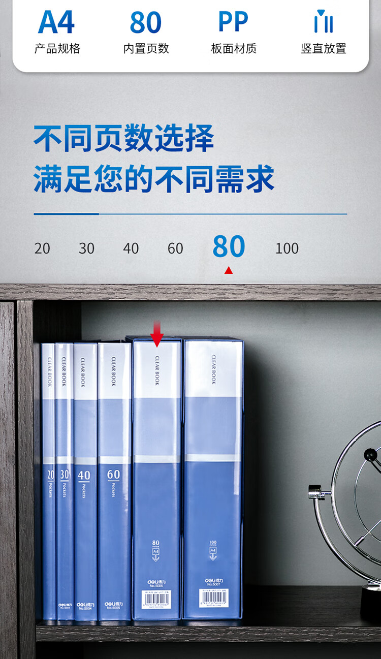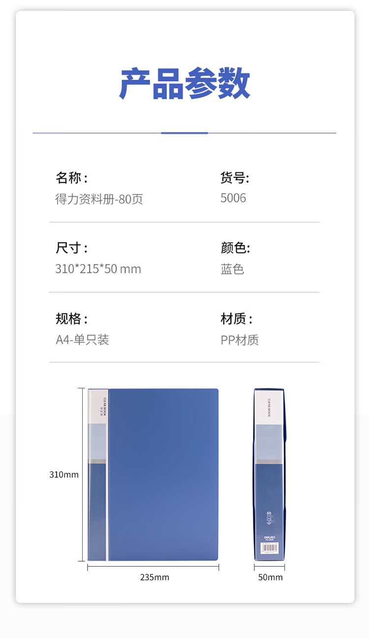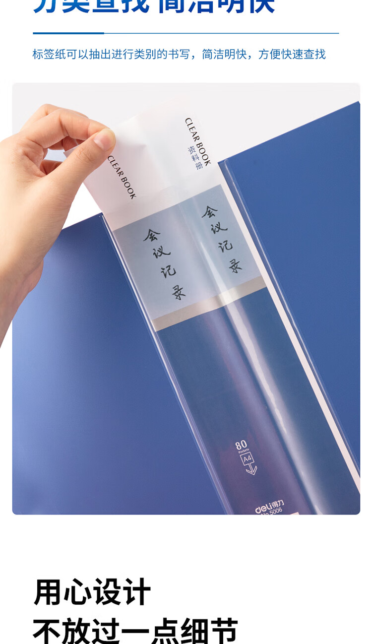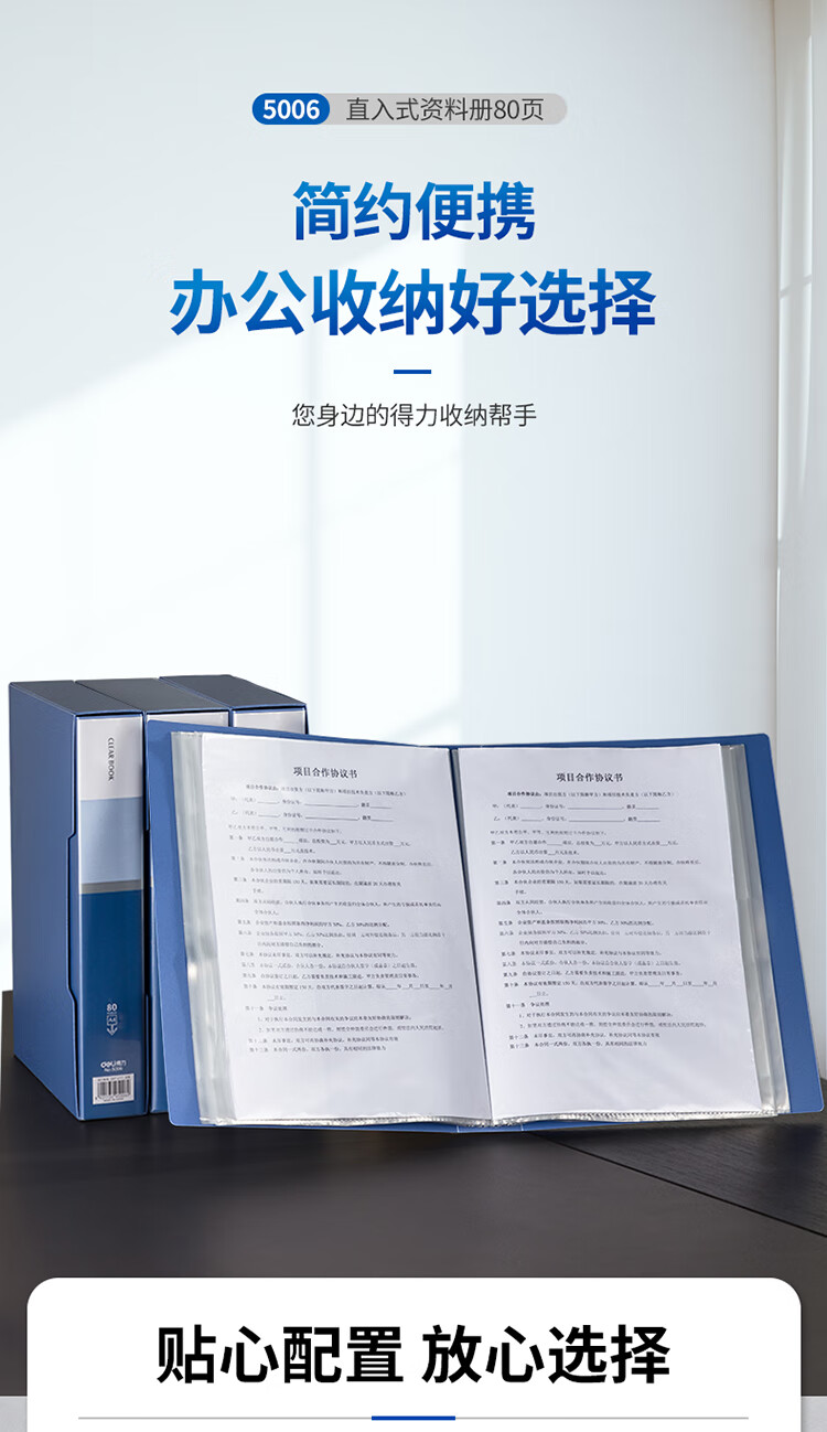 得力(deli)A4/80页大容量资料册插袋文件册活页文件夹活页插袋文件夹票证试卷收纳管理5006** 自营