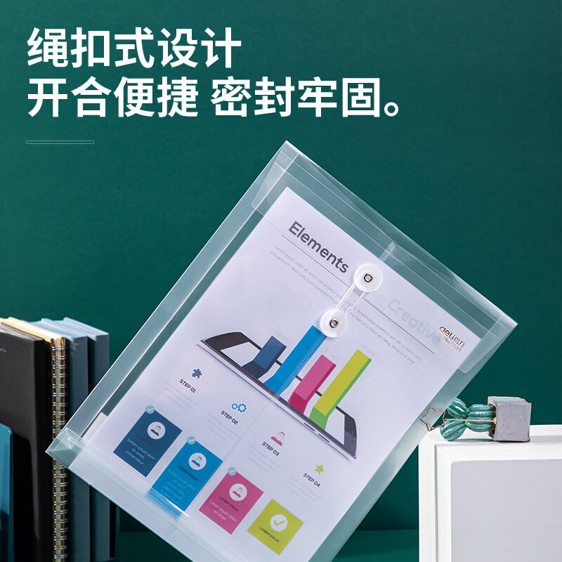 得力(deli)12只A4加厚防水透明文件袋资料袋绕绳档案袋 绑带式票据试卷收纳袋 学科分类5511** 自营