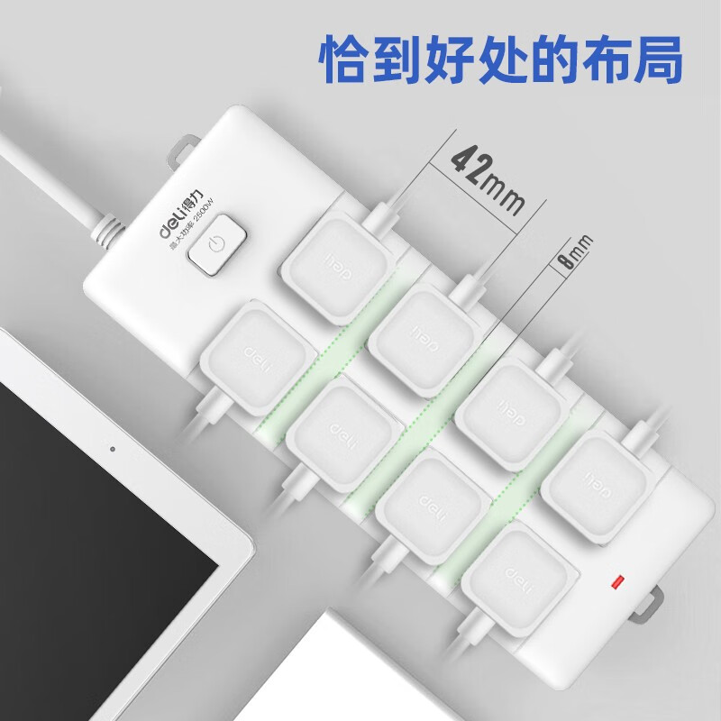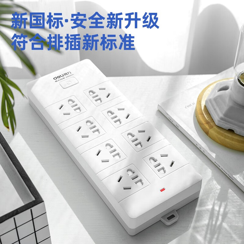 得力(deli) 新国标 插排 插座 接线板 插线板 总控开关 安全门保护插排 办公用品 18170-05(4组合插孔全长5米)** 自营