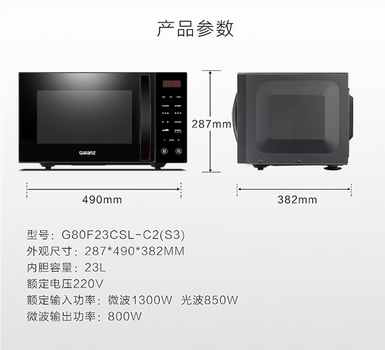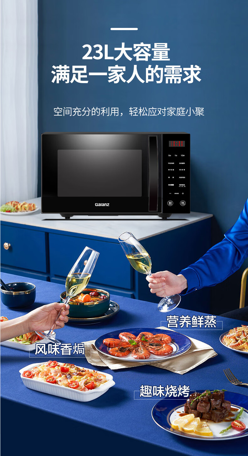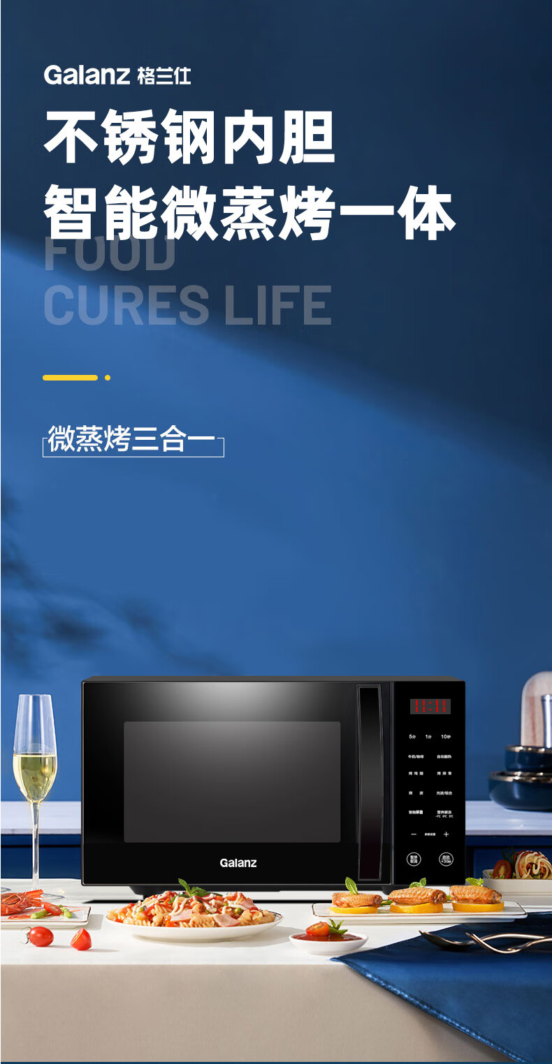 格兰仕(Galanz)微波炉家用 光波炉烤箱一体机智能微蒸烤平板23升大容量不锈钢内胆G80F23CSL-C2(S3)** 自营