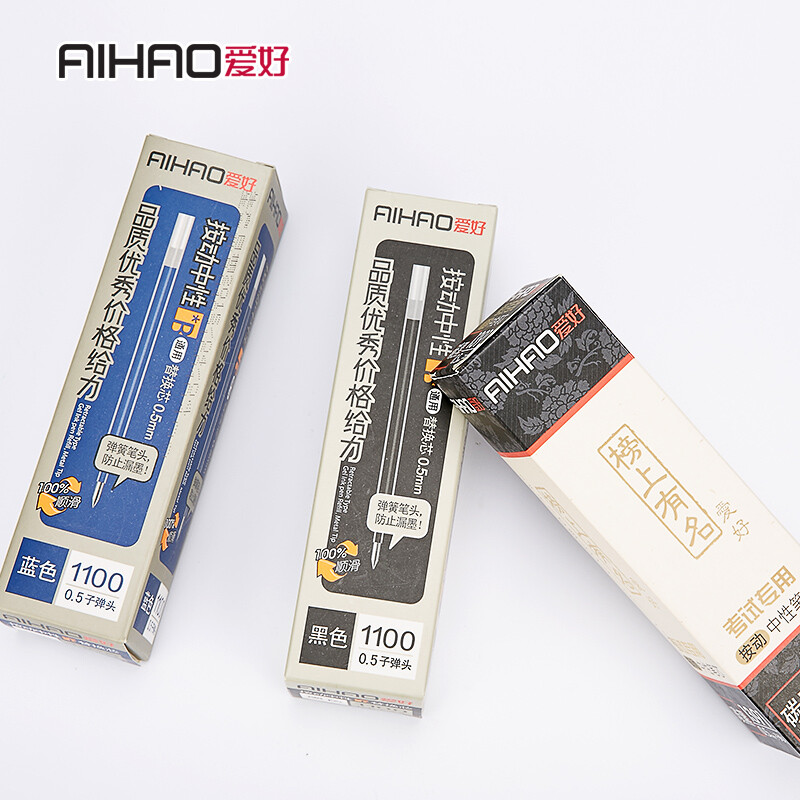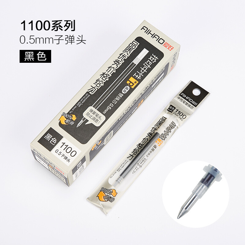 爱好(AIHAO)按动笔芯中性笔芯0.5mm子弹头替芯黑水笔芯通用笔心 1100 黑色20支装0.5m** 自营