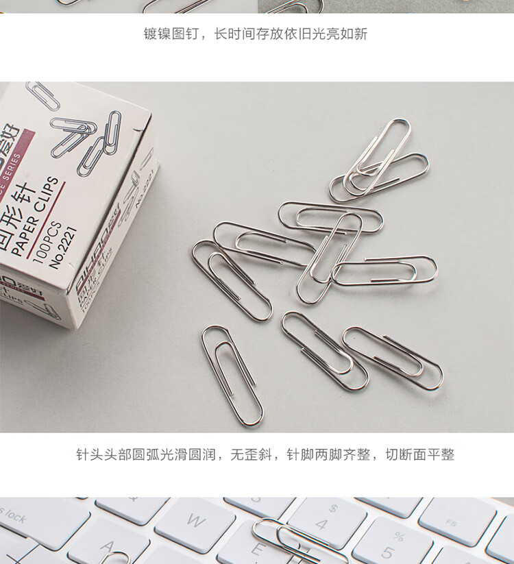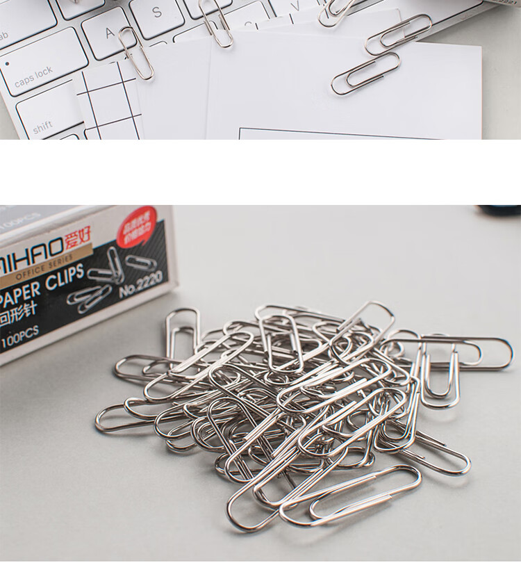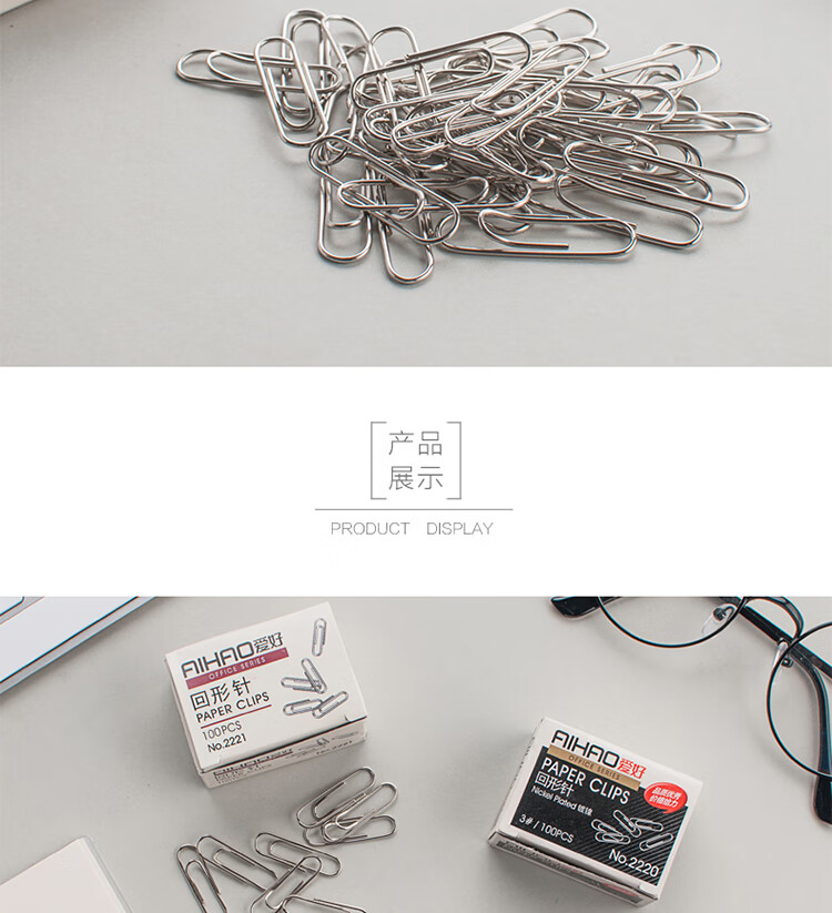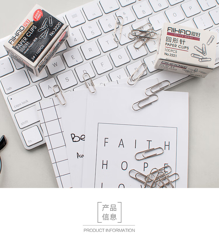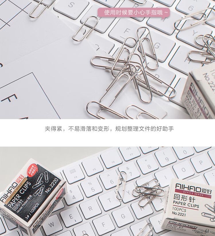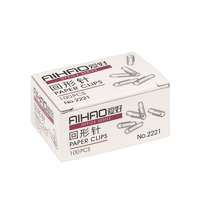 爱好(AIHAO)办公用品金属回形针防锈曲别针100枚/1盒 (回形针100枚)1盒2221** 自营