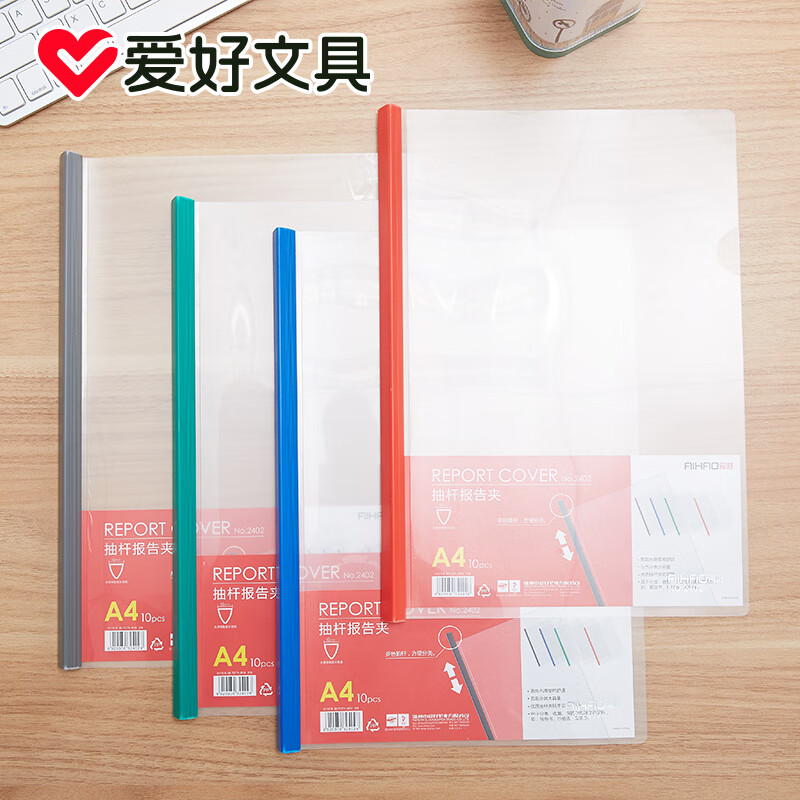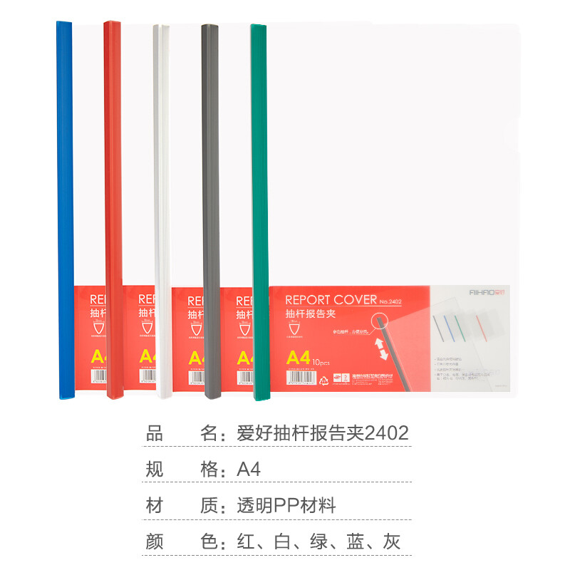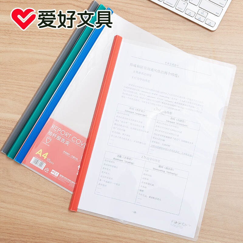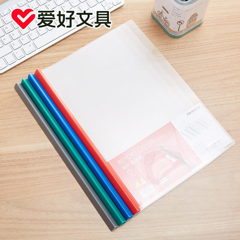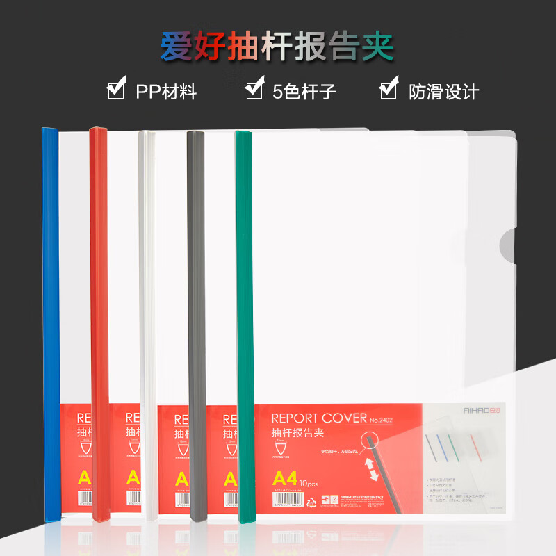 爱好A4透明塑料抽杆夹加厚学生文具资料夹文件夹A4拉杆夹办公用品抽杆夹资料册夹简历试卷学生书皮批发 5个装颜色随机** 自营