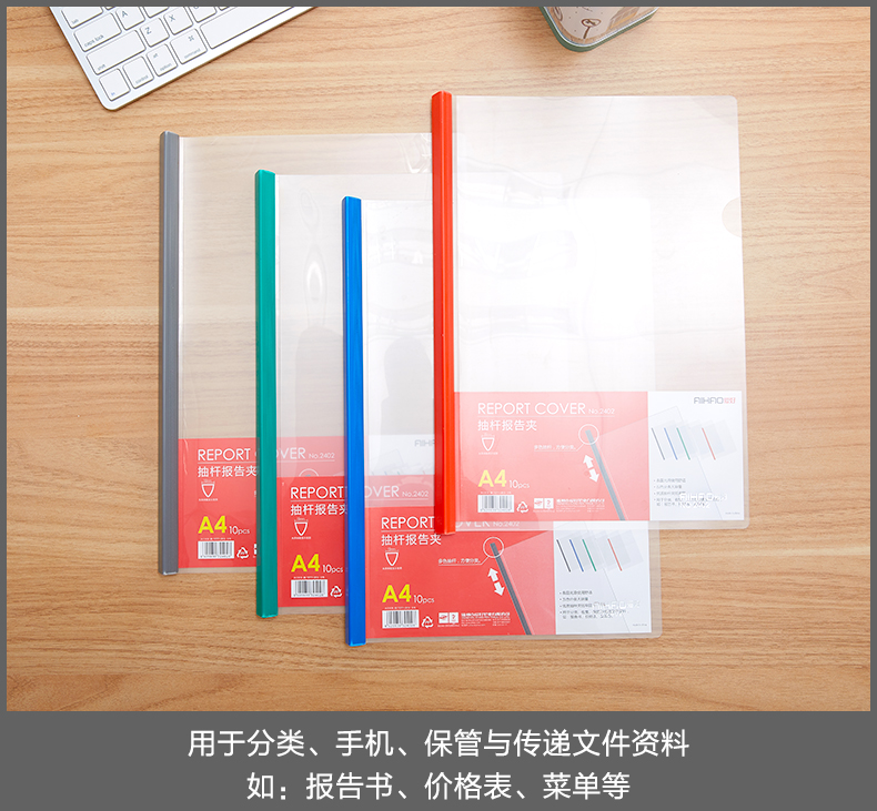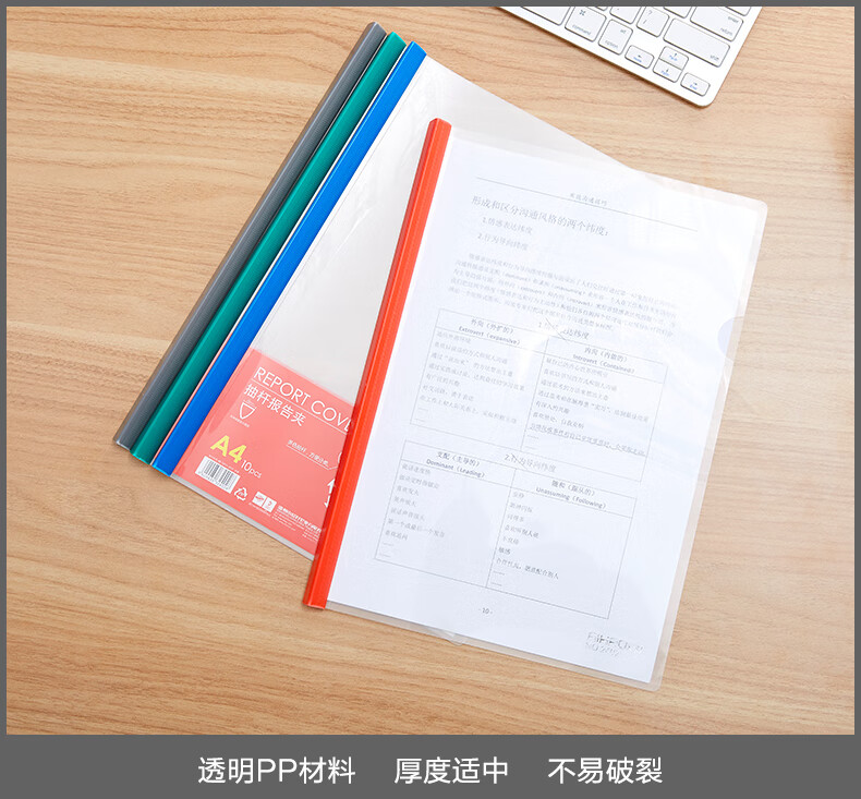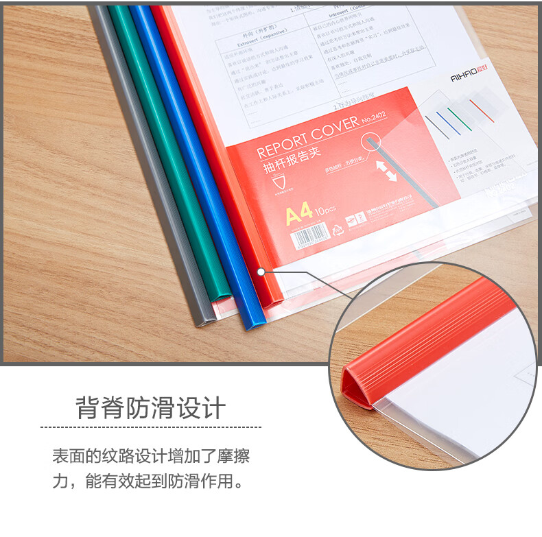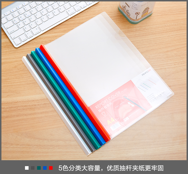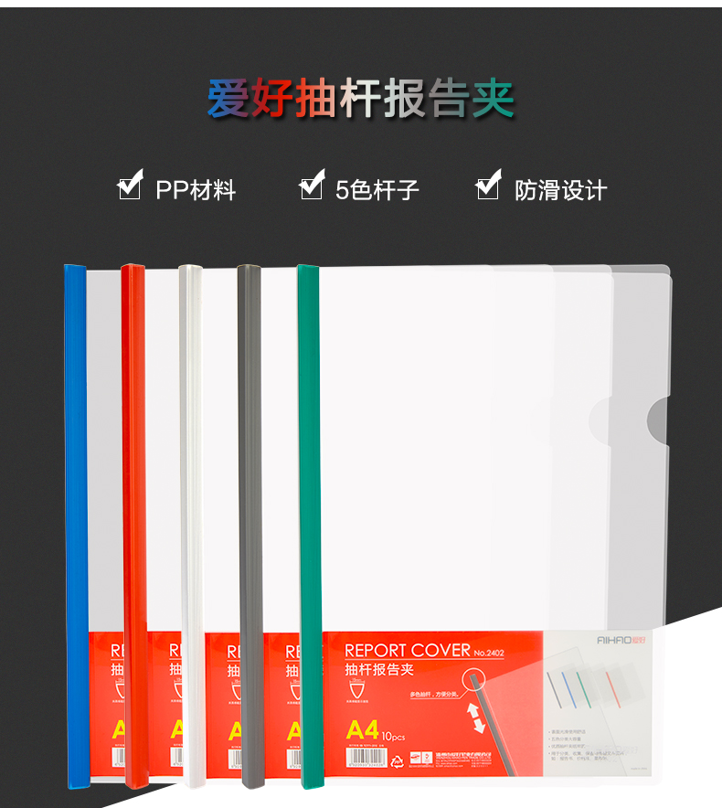 爱好A4透明塑料抽杆夹加厚学生文具资料夹文件夹A4拉杆夹办公用品抽杆夹资料册夹简历试卷学生书皮批发 5个装颜色随机** 自营