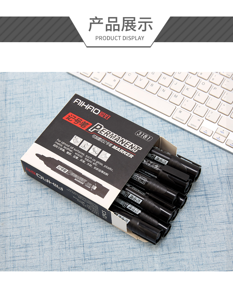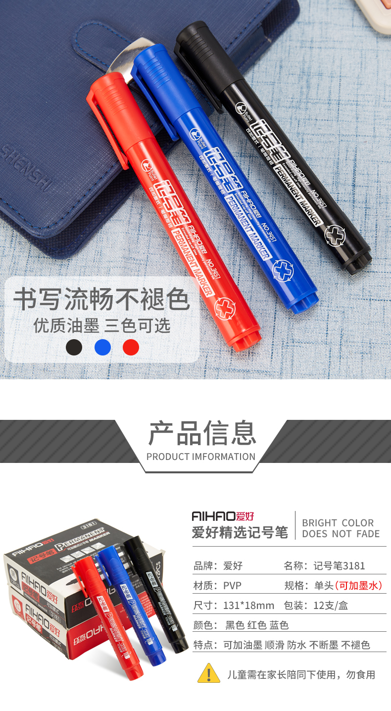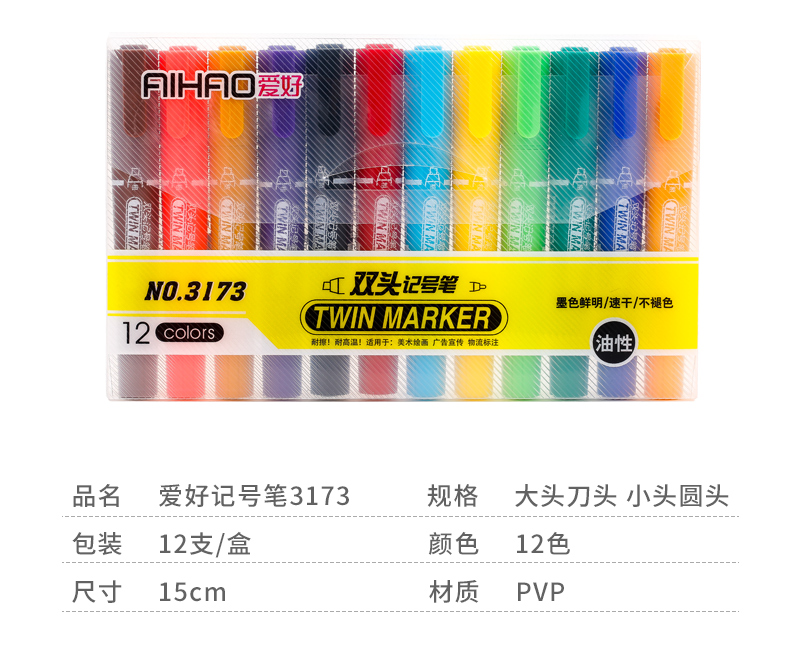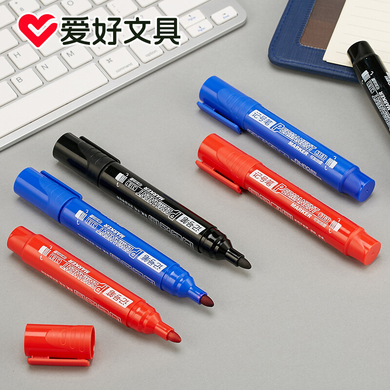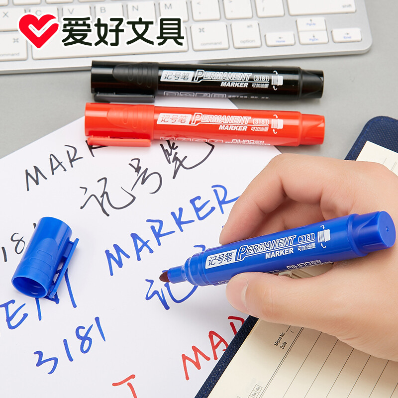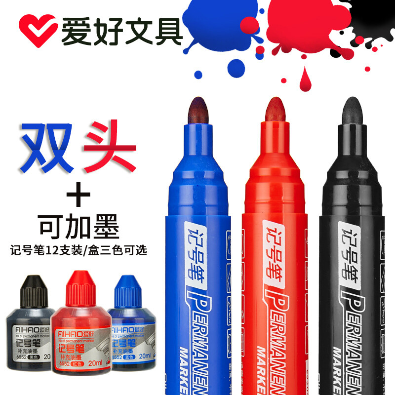 爱好(AIHAO) 记号笔黑色粗头大容量马克笔勾线笔油性笔防水不易掉色笔海报笔画线笔 黑色一盒** 自营