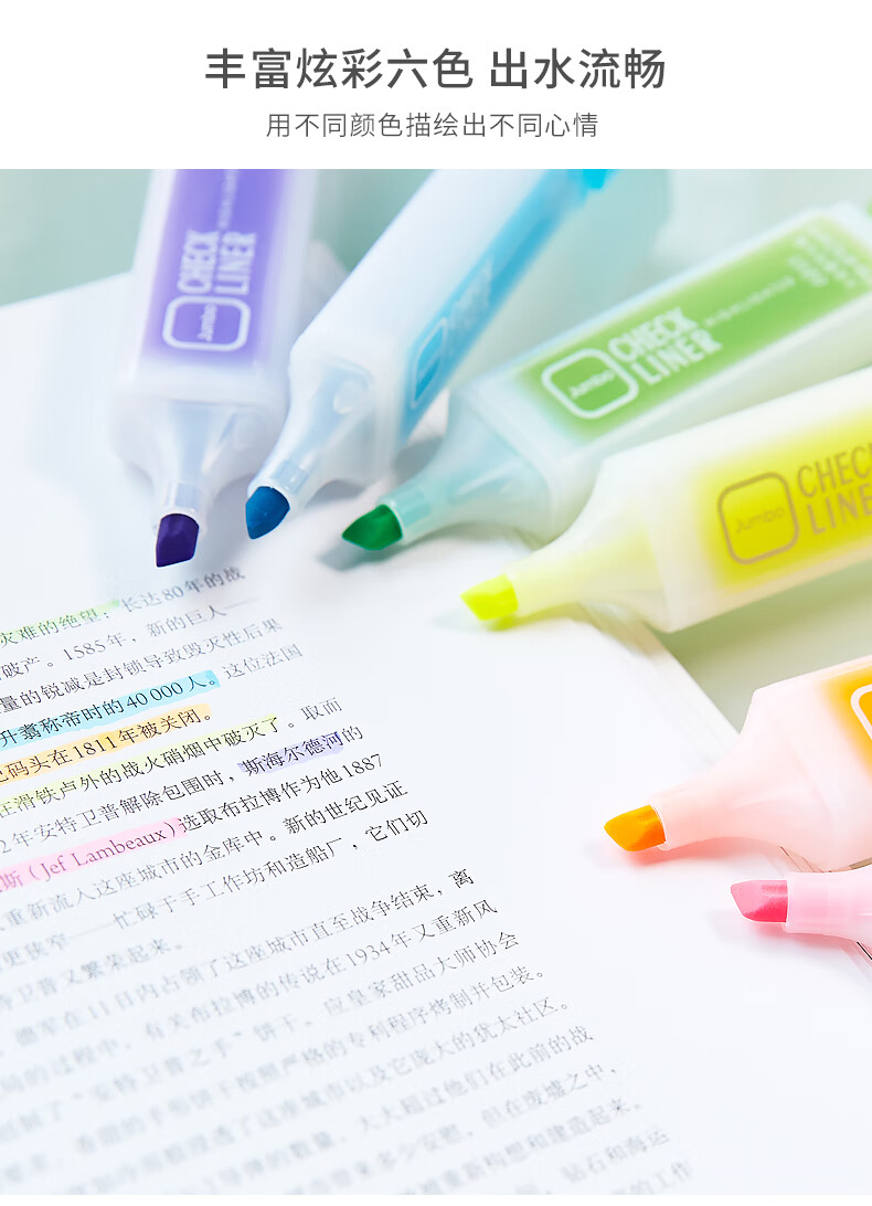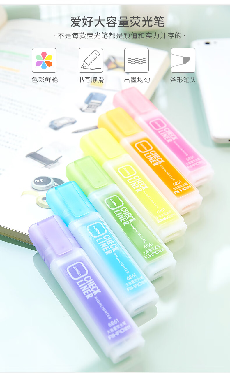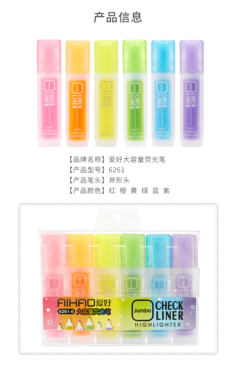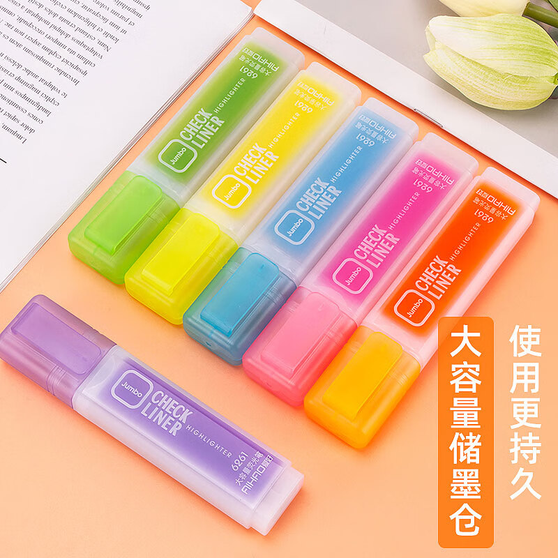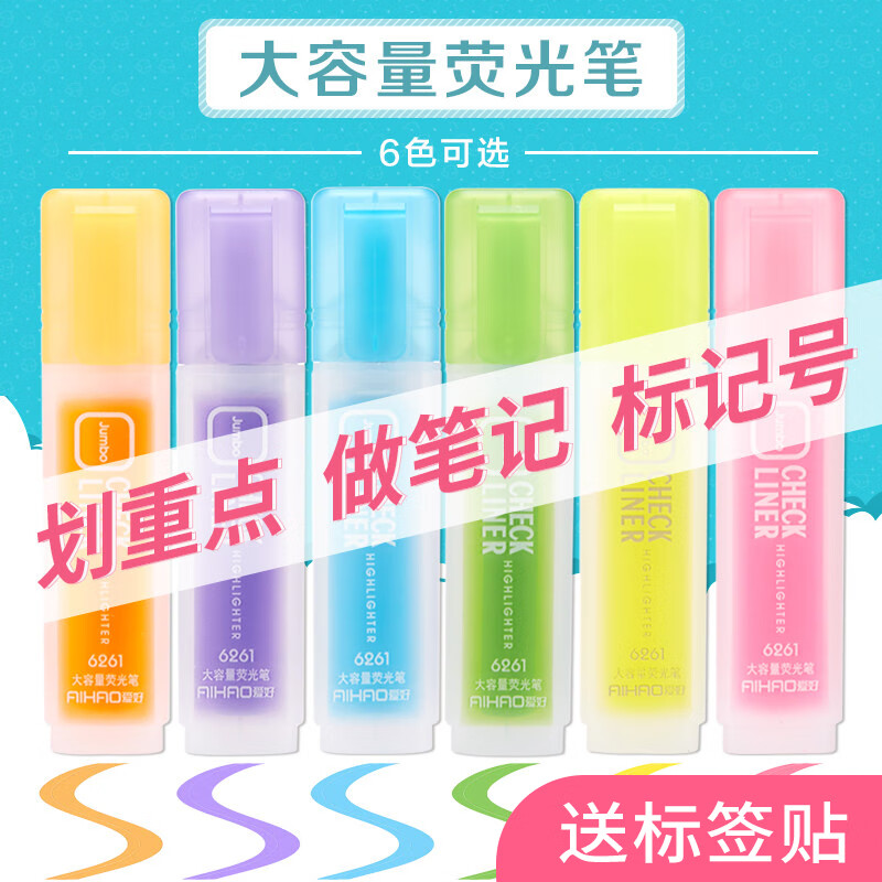 爱好(AIHAO) 荧光笔彩色标记笔护眼可擦双色双头记号笔香味细头粗笔大容量淡色马卡龙创意银光笔文具 6261六色装** 自营