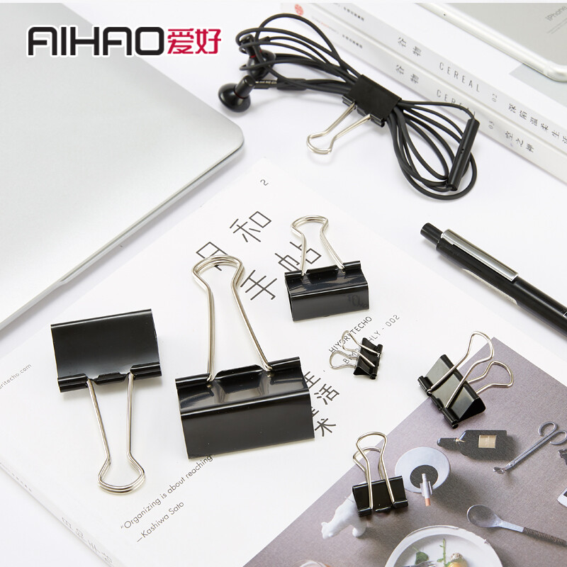 爱好(AIHAO) 长尾夹大号黑色长尾夹票夹子文具用品燕尾夹文件夹子 25mm共40个 66812 自营