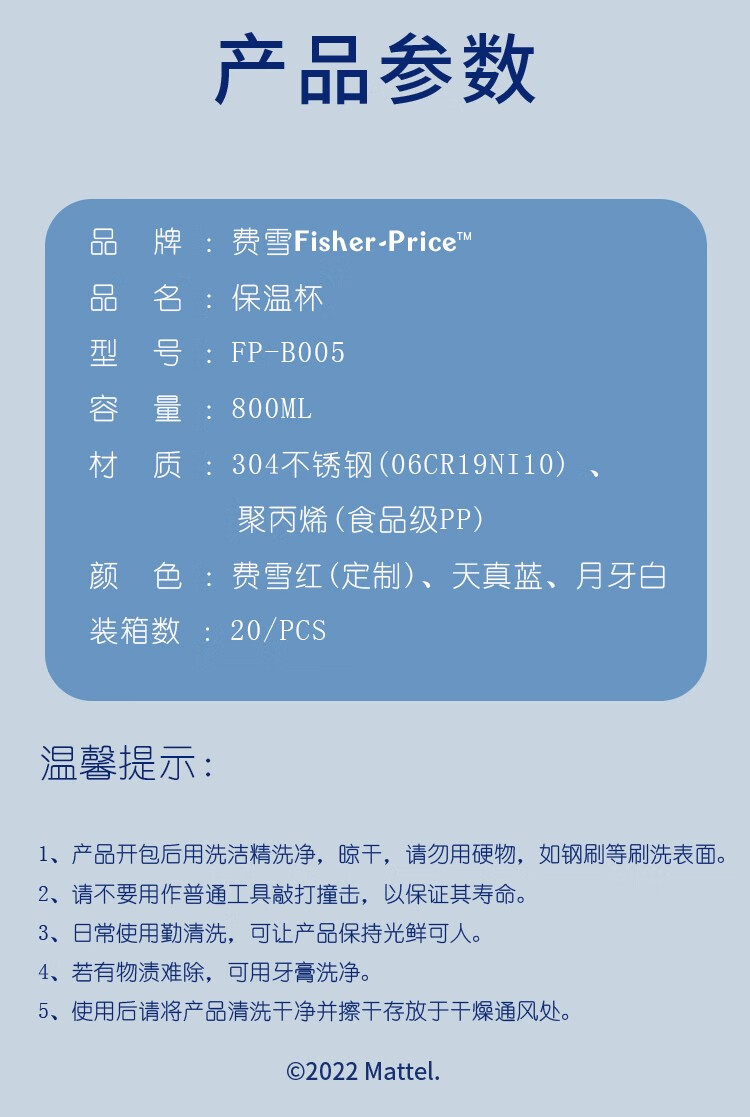 FISHER-PRICE费雪 保温杯FP-B005 月牙白 自营