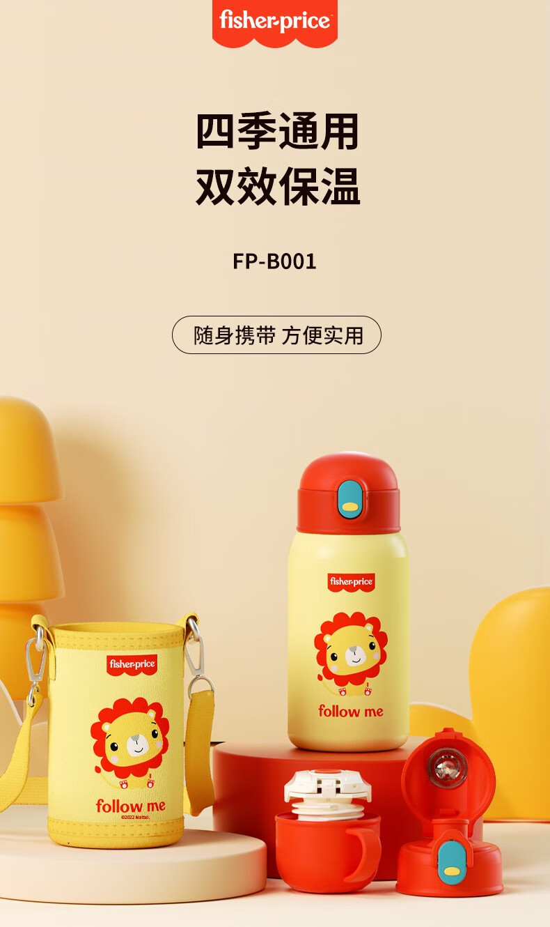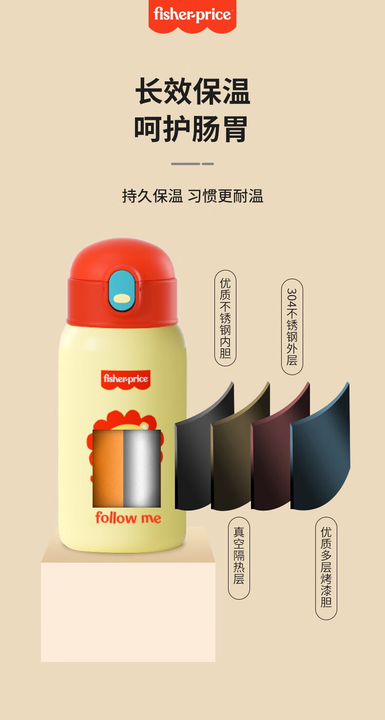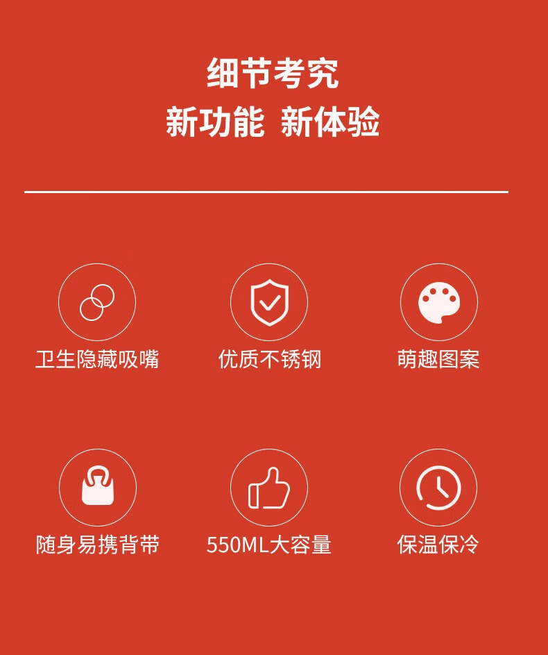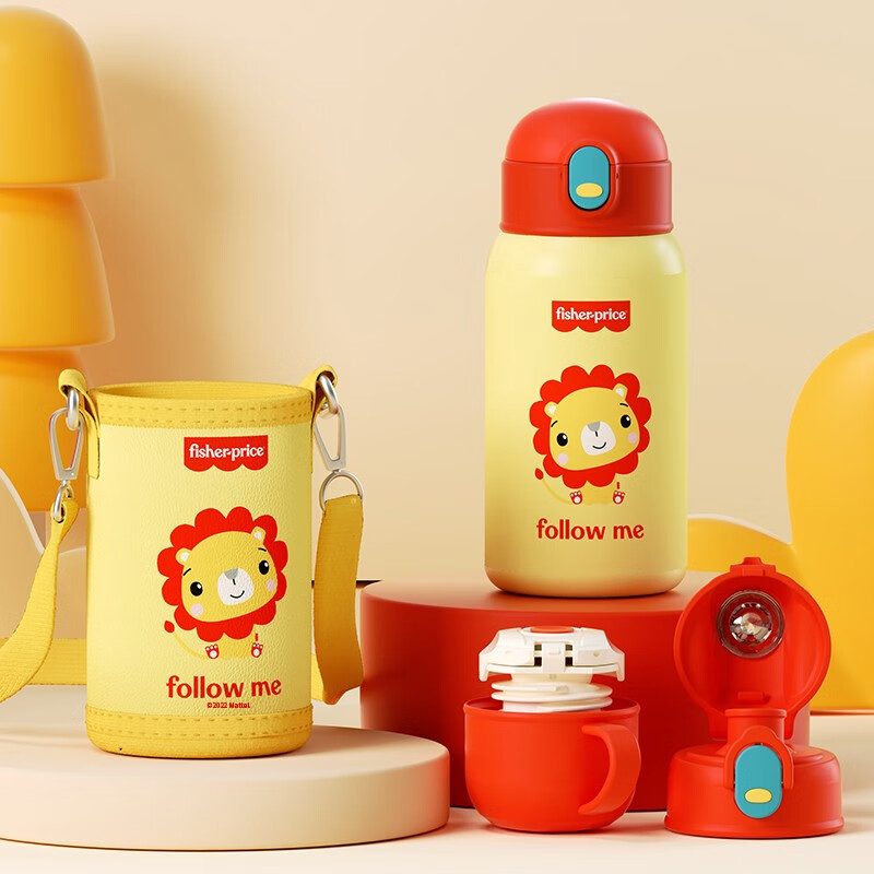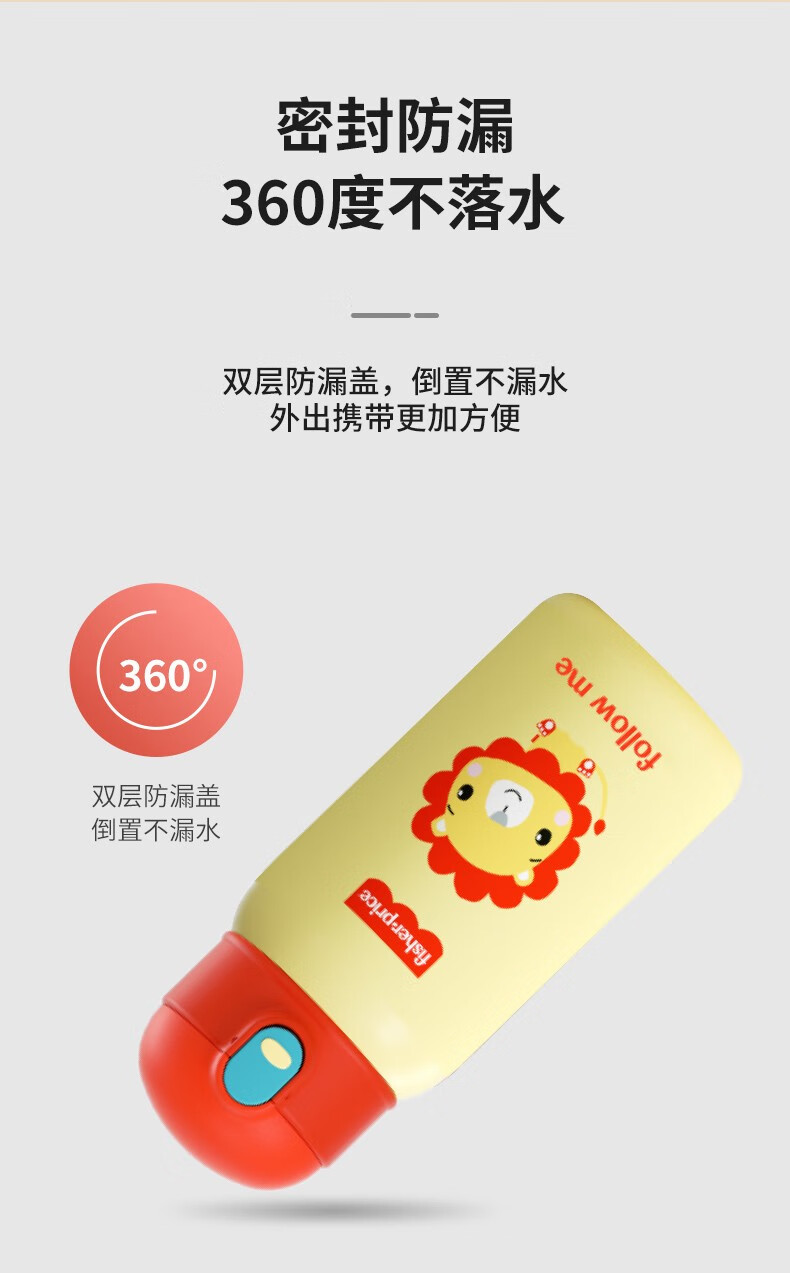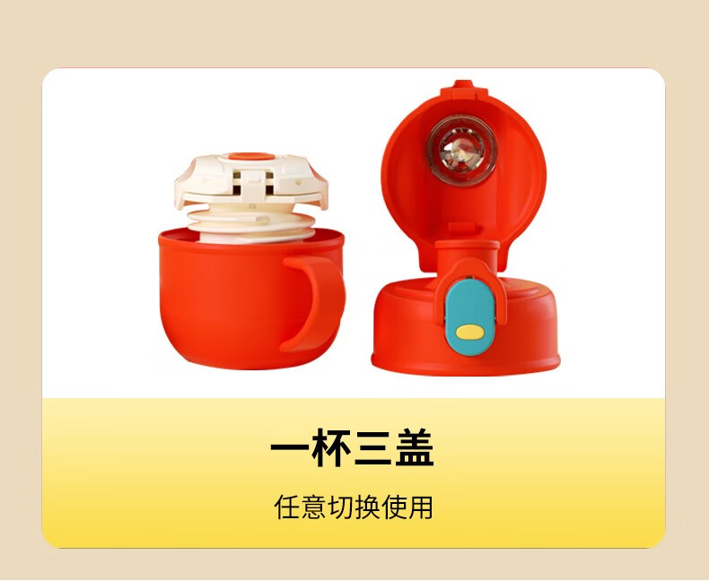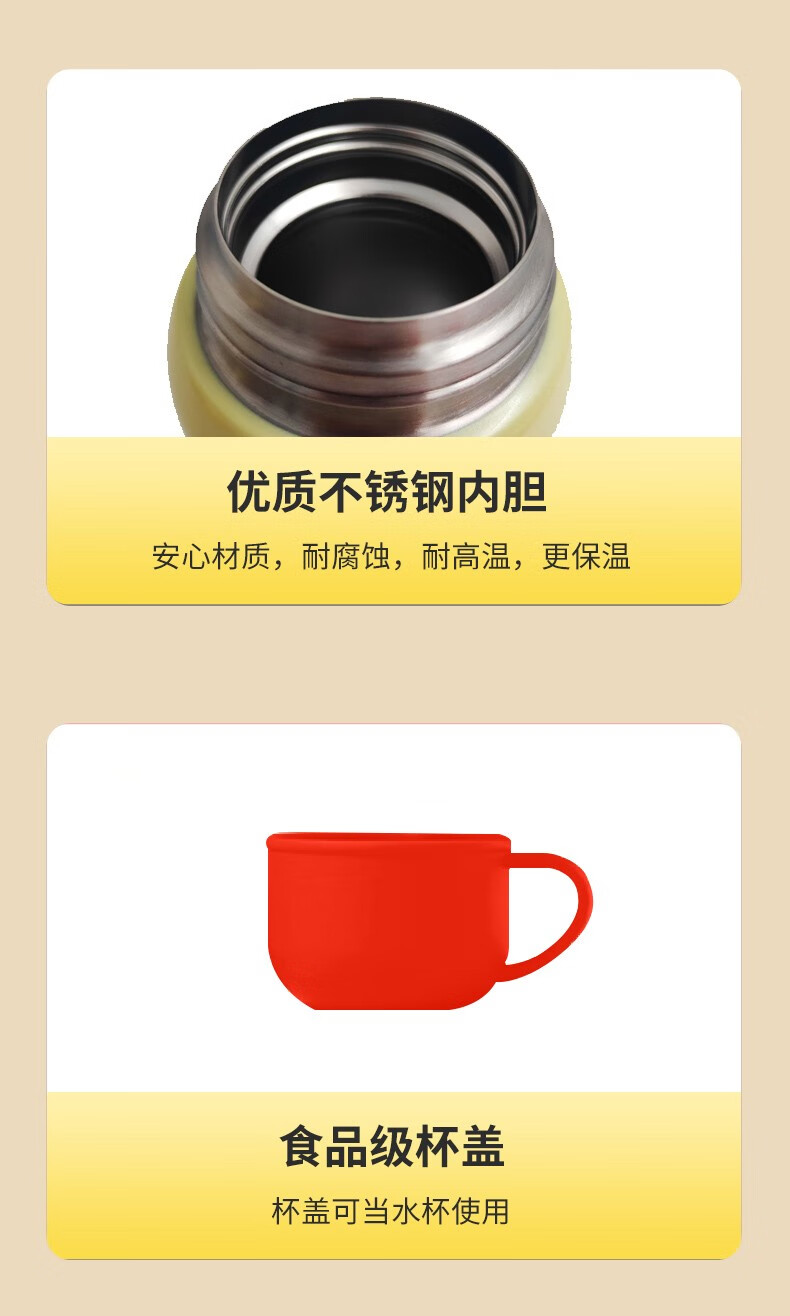 费雪FP-B001保温杯两用杯子学生可爱卡通不锈钢保温杯子550ml 红色** 自营