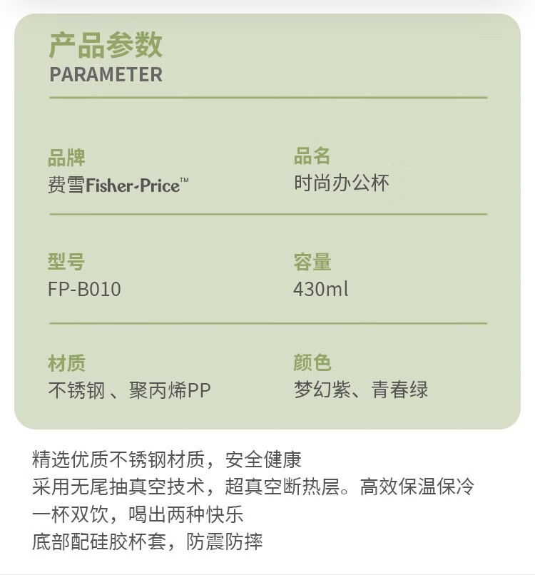 Fisher-Price费雪 时尚办公杯FP-B010 青春绿** 自营