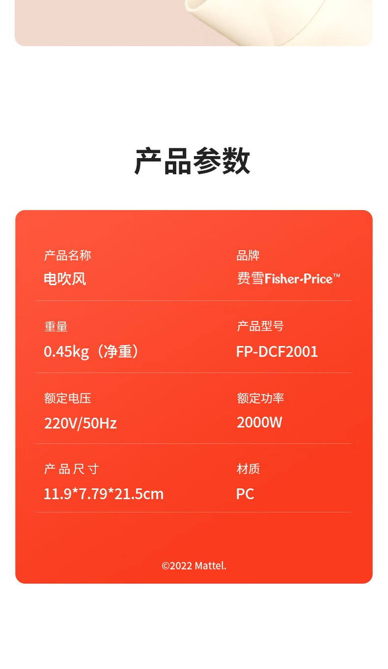 费雪FISHER-PRICE费雪 电吹风FP-DCF2001 绿色** 自营