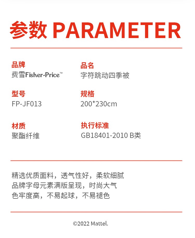 FISHER-PRICE费雪 字符跳动四季被FP-JF013 字符跳动四季被** 自营