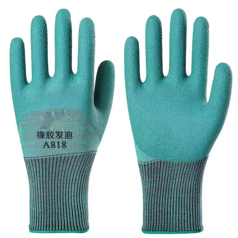 倔强大师乳胶发泡手套A818绿纱绿胶半挂 自营