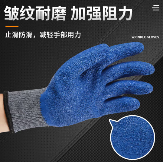 倔强大师10针灰纱蓝乳胶皱纹手套 自营