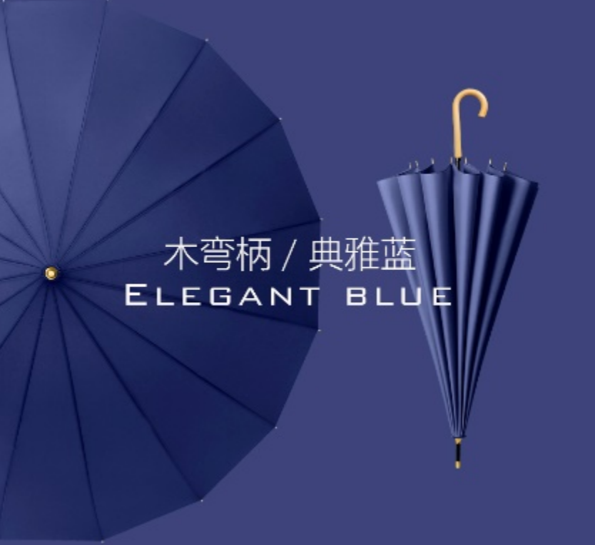 倔强大师16开木弯柄碰击布雨伞 典雅蓝 自营