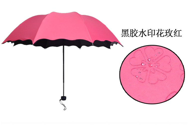 倔强大师遇水开花4节晴雨伞 玫红色 自营