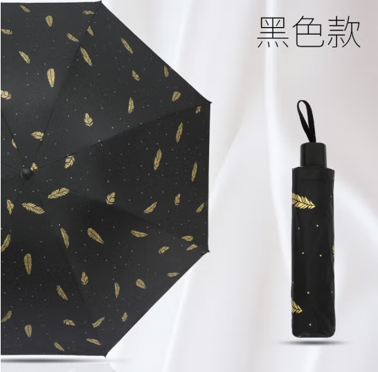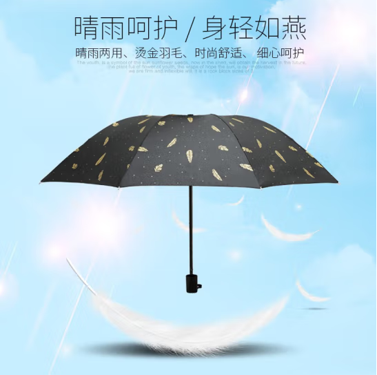 倔强大师羽毛手动晴雨伞 烫金黑羽毛 自营
