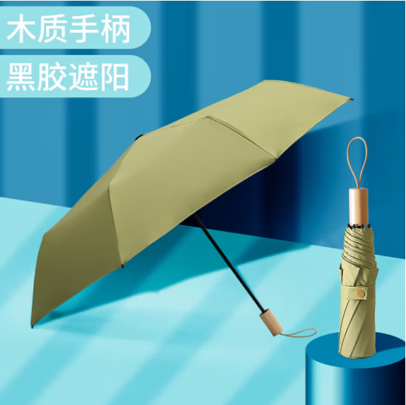 倔强大师九合版木柄自然光手动晴雨伞 抹茶绿 自营