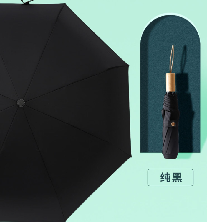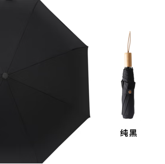 倔强大师九合版木柄自然光手动晴雨伞 黑色 自营