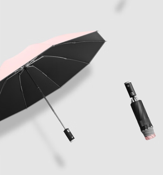 倔强大师3029黑色手电筒反向自然光全自动晴雨伞 樱花粉 自营