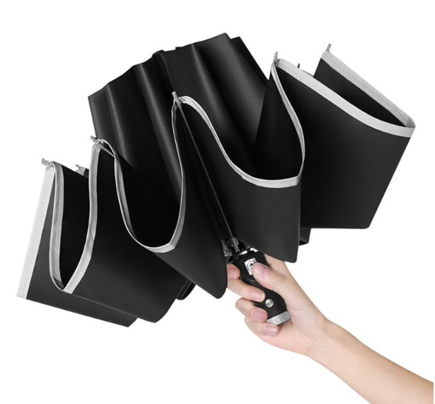 倔强大师3029黑色手电筒反向自然光全自动晴雨伞 曜石黑 自营