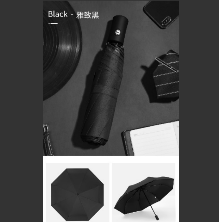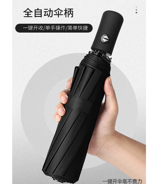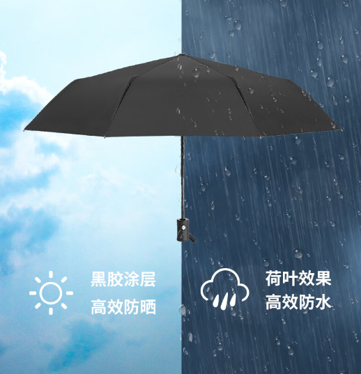 倔强大师全自动8开钢骨伞架半遮黑胶布晴雨两用伞 雅致黑 自营