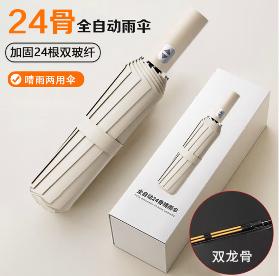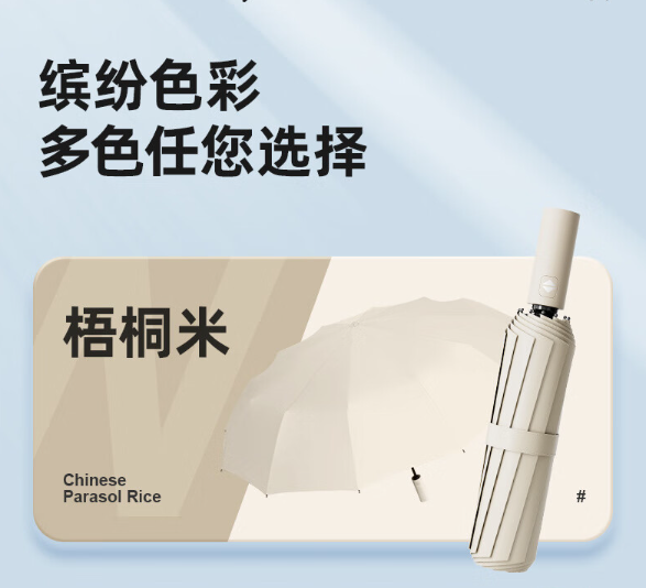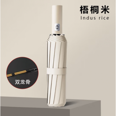 倔强大师全自动十二骨双骨三折黑胶晴雨两用折叠伞 梧桐米 自营