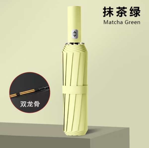 倔强大师全自动十二骨双骨三折黑胶晴雨两用折叠伞 抹茶绿 自营
