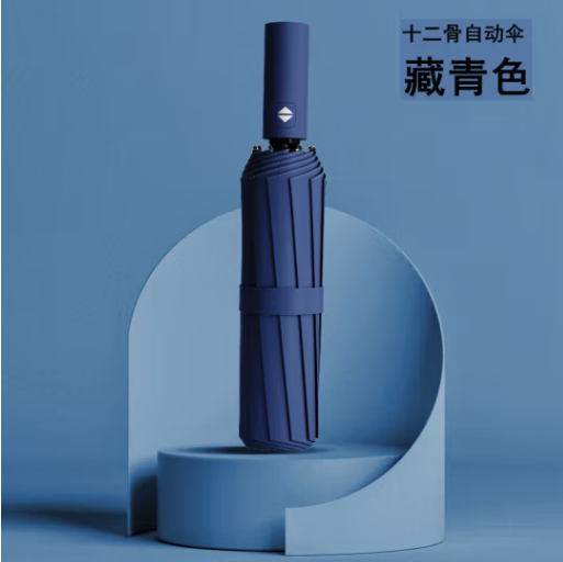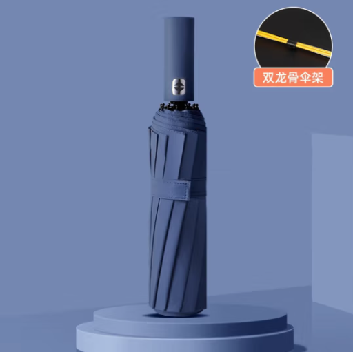 倔强大师全自动十二骨双骨三折黑胶晴雨两用折叠伞 藏青色 自营