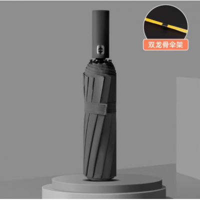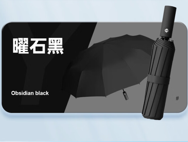 倔强大师全自动十二骨双骨三折黑胶晴雨两用折叠伞 曜石黑 自营