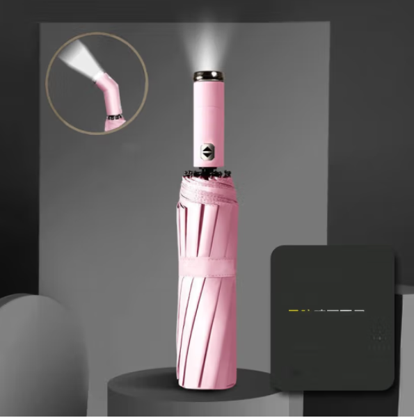 倔强大师全自动双股晴雨伞 旋转led灯筒 樱花粉 自营