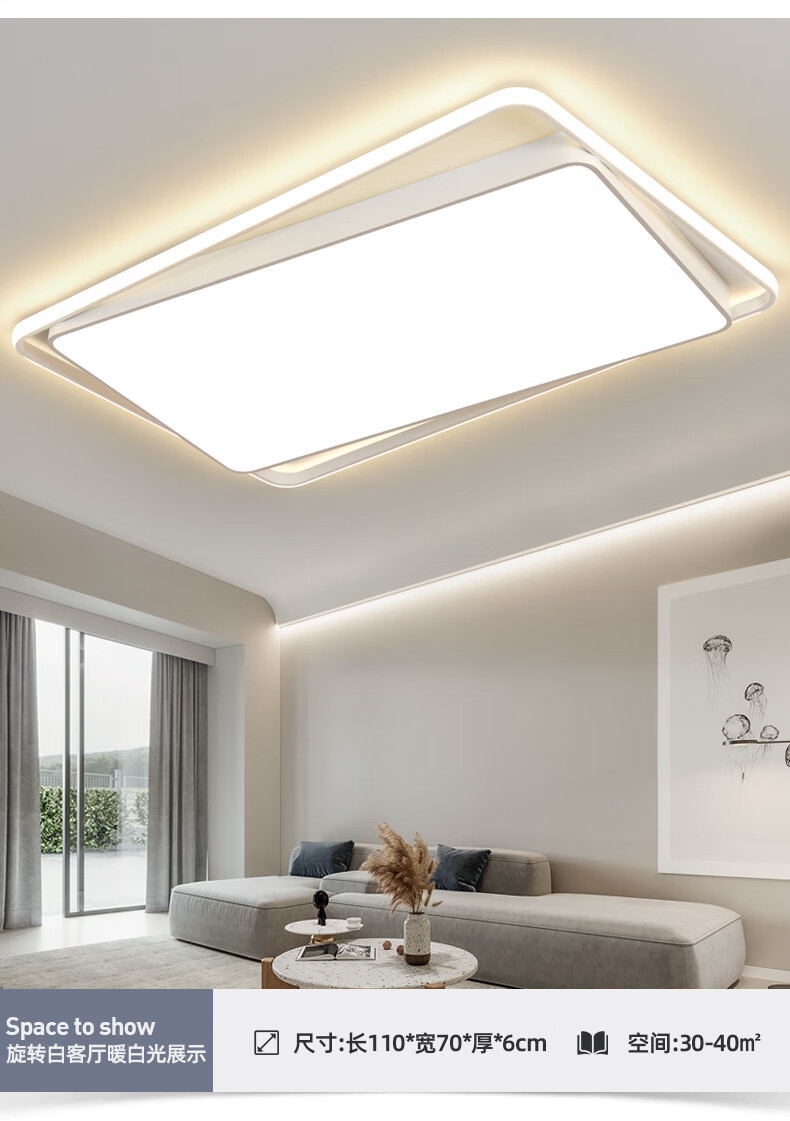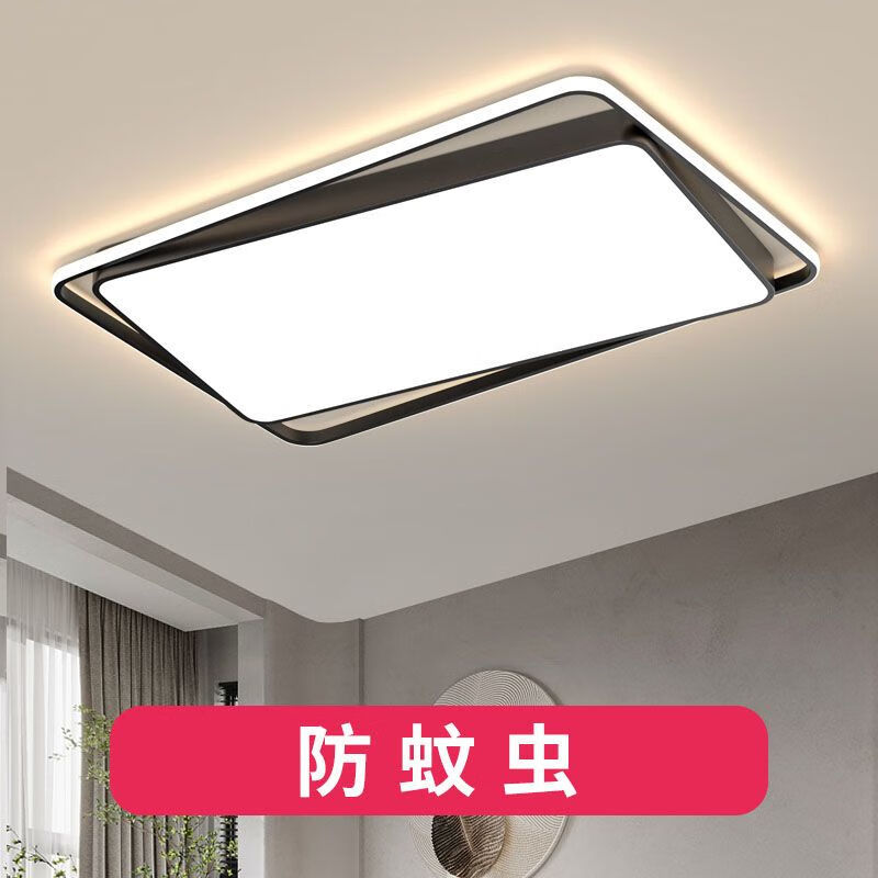 倔强大师优质铁艺+亚克力单色白光吸顶灯96瓦 单光环 长方形 黑色 尺寸:900x600x80 自营