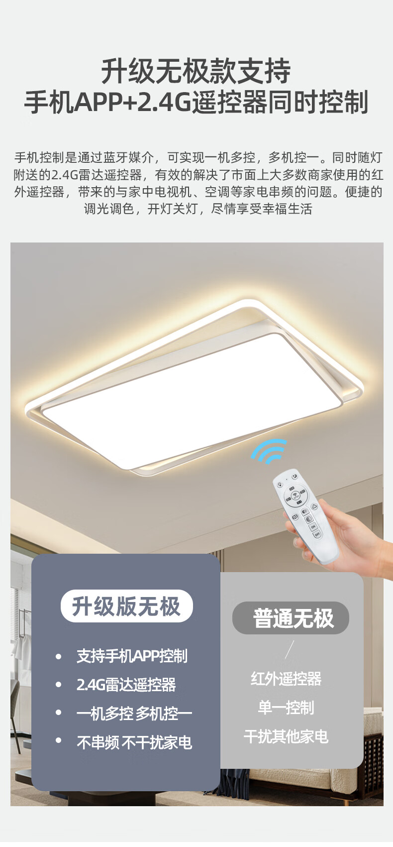 倔强大师优质铁艺+亚克力天猫精灵语音控制吸顶灯 单光环 长方形 黑色 尺寸:900x600x80 自营