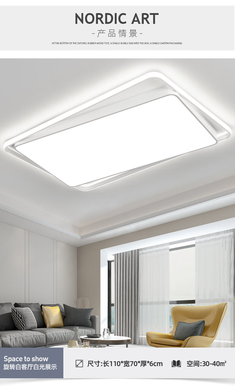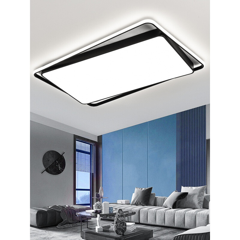 倔强大师优质铁艺+亚克力 小米/小爱语音控制吸顶灯 单光环 长方形 黑色 尺寸:900x600x80 自营